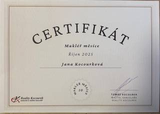 Velmi rád bych poděkoval za výbornou práci a skvělý přístup paní makléřky Jany Kocourkové. Vše probíhalo hladce včetně pohotové komunikace. Rozhodně můžu jedině doporučit.