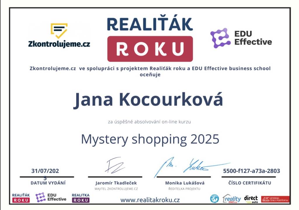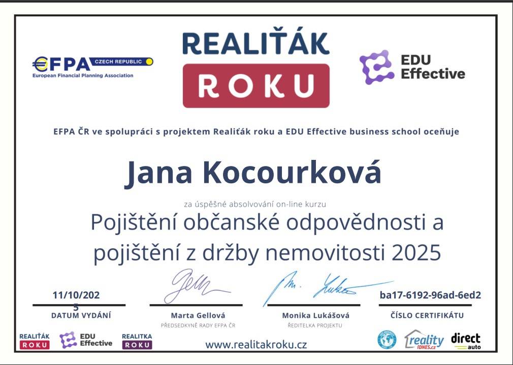 Bc. Jana Kocourková Již několikátá spolupráce při nákupu/prodeji realit a opět vše klaplo na 100 %