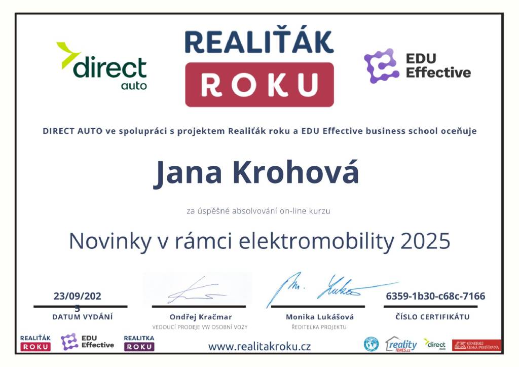 "Vynikající spolupráce, profesionální přístup, rychlé řešení případných problémů, skvěle připravené dokumenty. P. Krohová je profesionál na svém místě! Děkujeme za zdárně uzavřený obchod."