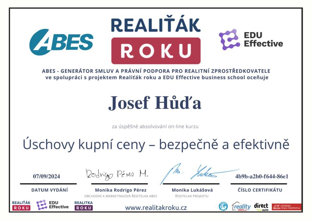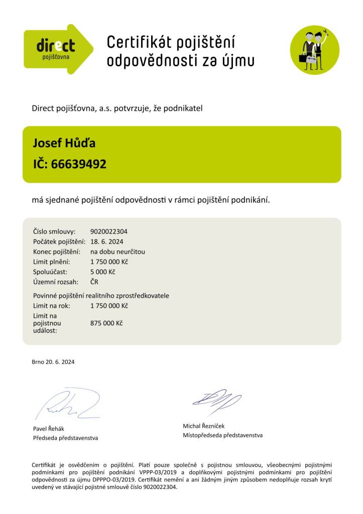 "Skvělá, trpělivá a profesionální práce makléře, pana Josefa Hudi !"