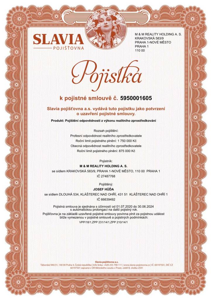 "Jeste jsem se nesetkal s takto nadstandartnim profesionalnim pristupem maklere. Vyzdvihnu hlavne poctivost v jednanich , dochvilnost , pravdomluvnost a max. pece vyhovet prani. Rozhodne budu dale doporucovat M&M Reality predevsim s panem Josefem Hudou. S pozdravem Rene Vanecek vas spokojeny zakaznik."