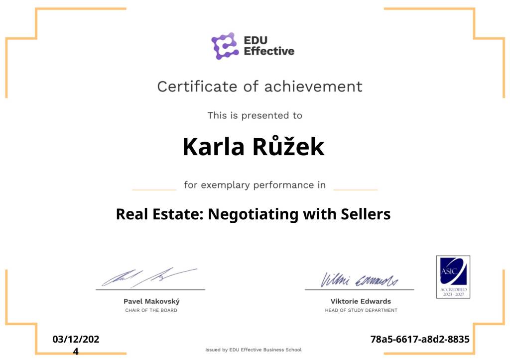 V realitách působím od roku 2017, a to nejen u nás, ale i v zahraničí. Mám bohaté zkušenosti s prodejem pozemků, domů, bytů a developerských projektů. Moje práce není jen o uzavírání obchodů, ale především o pomoci klientům najít ideální řešení pro jejich nemovitosti. Poskytuji špičkové služby, které nejen usnadní celý průběh, ale také maximalizují hodnotu vaší investice. Každému klientovi věnuji plnou pozornost. Do každé zakázky vkládám své úsilí, čas i odborné znalosti. Během schůzky probereme vaše potřeby a najdeme ideální řešení na míru ❤️.
