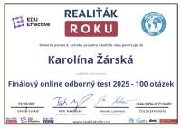 ráda bych ohodnotila přístup Vaší realitní makléřky paní Karolíny Žárské. Na paní Žárskou jsem se obrátila se žádostí o vypracování posudků k nemovitostem pro vyřízení dědictví. Její přístup byl velice profesionální, ale zároveň přátelský a milý. Všechny mé dotazy zodpověděla rychle, a ještě mi poradila, jak mám postupovat dál. Můžete být na svoji makléřku právem pyšní. Jelikož pracuji ve školství, nemohu hodnotit jinak, než dát 1*.