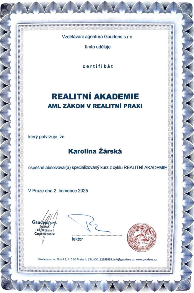 S paní Karolínou Žárskou jsme měli tu čest spolupracovat při koupi nemovitosti a nemůžeme ji než vřele doporučit. Od prvního kontaktu byla velmi profesionální, vstřícná a ochotná. Její přístup byl lidský, ale zároveň odborný – vždy dokázala poradit, vysvětlit a najít nejlepší možné řešení.