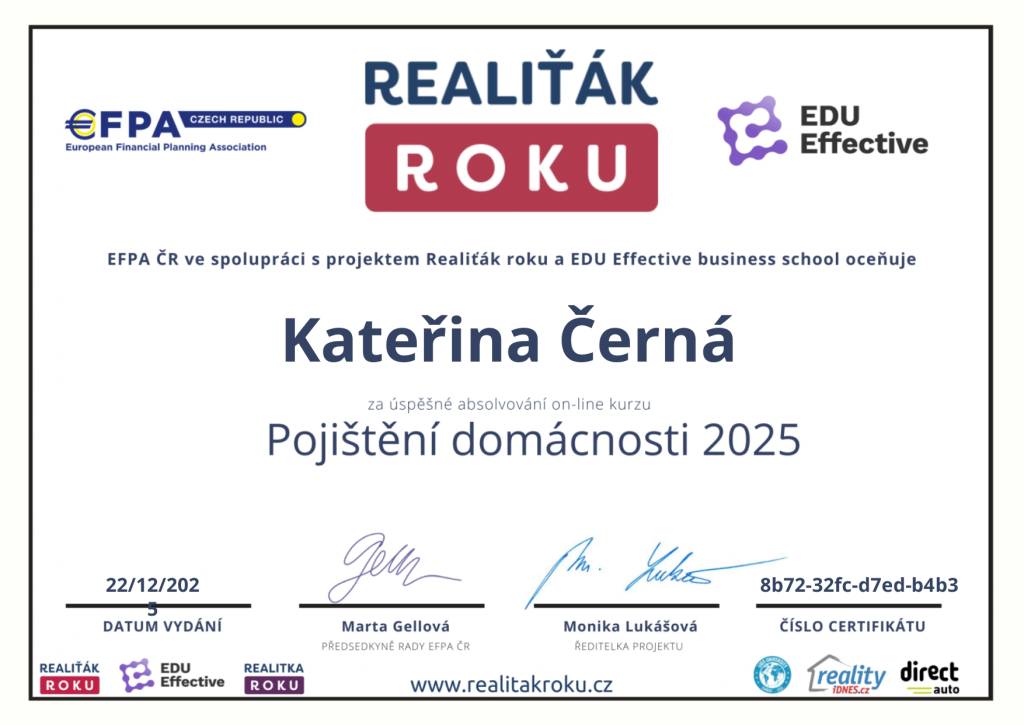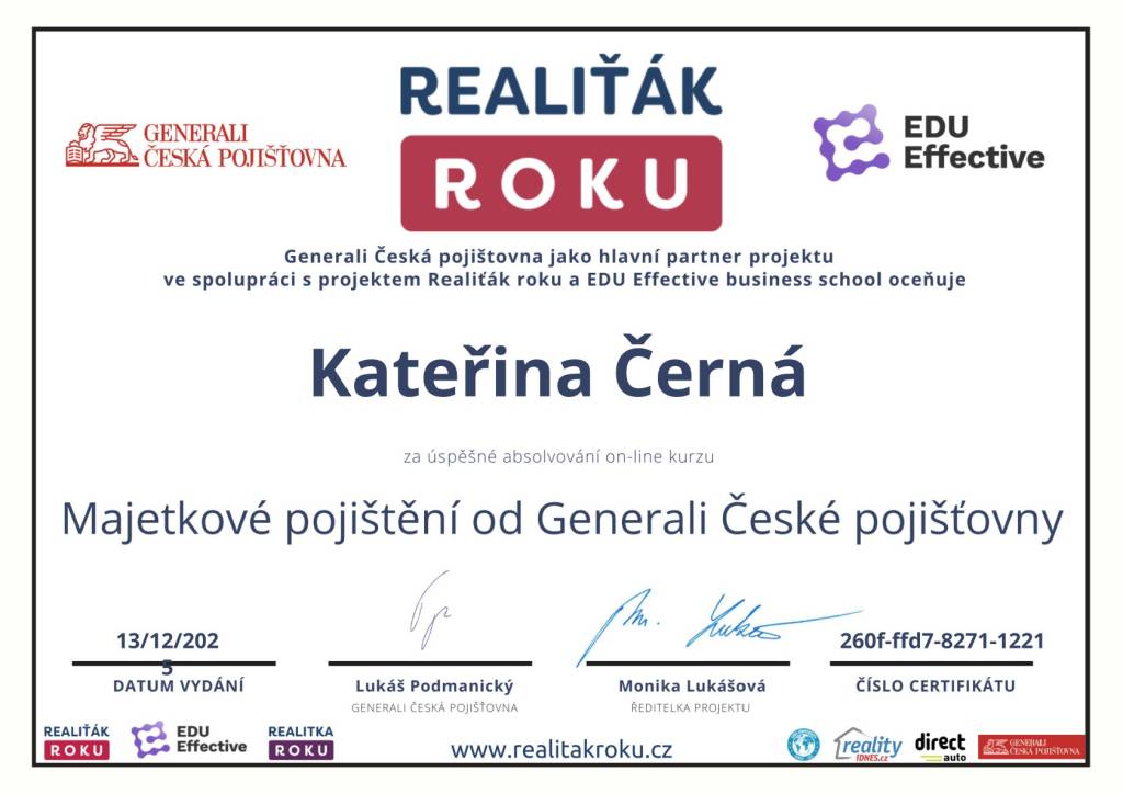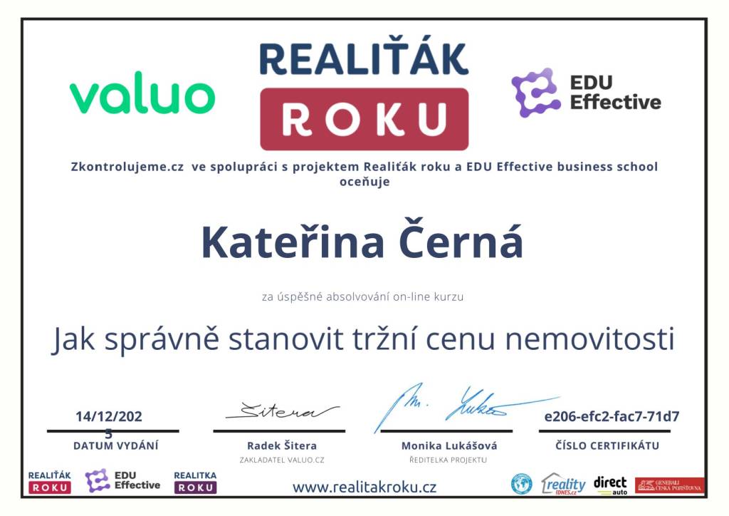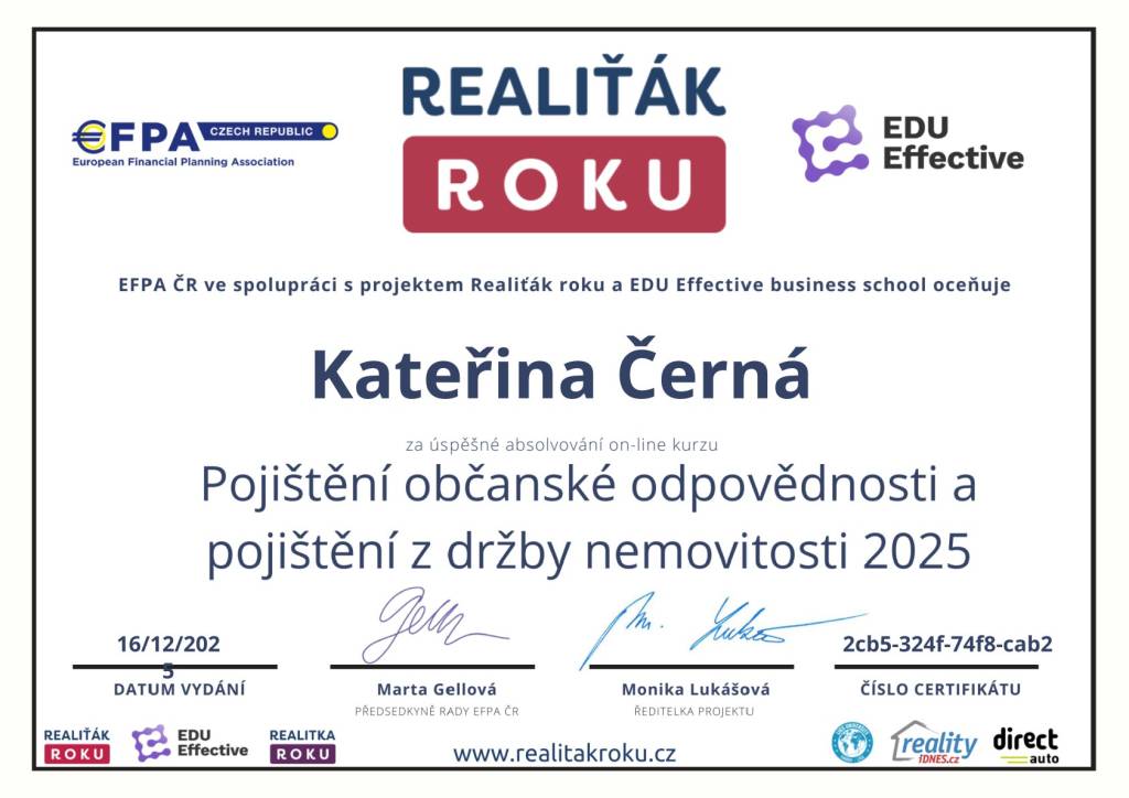 Ráda bych poděkovala paní Černé a týmu Comfort Reality za profesionální a vstřícný přístup. Oceňuji výbornou komunikaci, ochotu a hladký průběh celé spolupráce. Služby mohu jednoznačně doporučit.