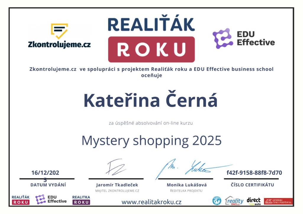 Realitymix - Kateřinka je velice ochotný člověk. Umí jednat s lidmi. Je spolehlivá důsledná ochotná. Splní vám vaše požadavky. Je pracovitá. Nikoho nepodrazi. Je to žena na správném místě. Vždy s ní budete spokojeni.