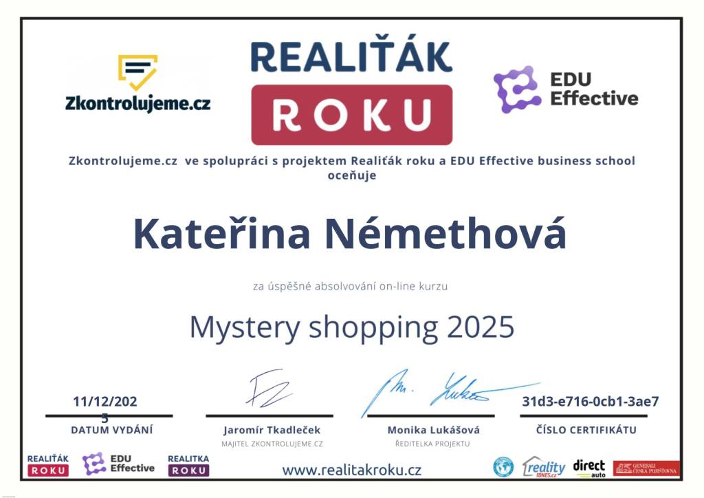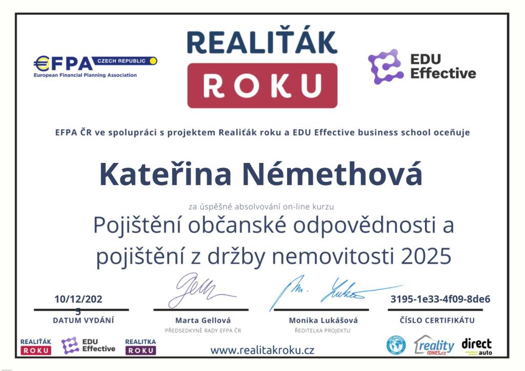 Maximální spokojenost. Paní Némethová Kateřina je odbornice na svém místě. Skvělá komunikace, rychlost a férové jednání. Comfort reality mohu jen doporučit.