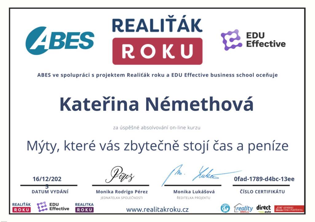 Ráda bych poděkovala paní Némethové z Comfort reality za naprosto profesionální přístup.