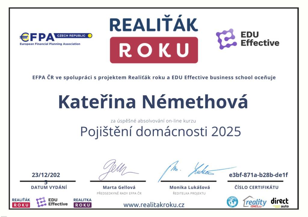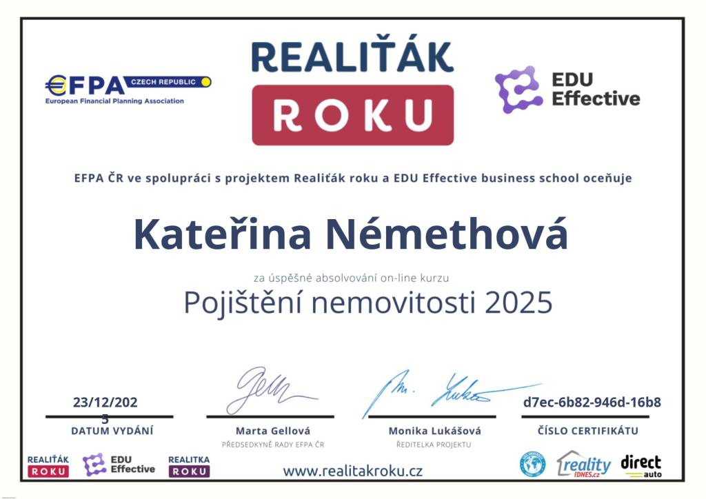 Spolupráce s paní Némethovou byla výborná. Kromě vysoké odbornosti oceňuji především její lidskost a trpělivost, se kterou nám vysvětlila všechny kroky. V Comfort reality vědí, že reality nejsou jen o budovách, ale hlavně o lidech. Děkujeme za vše.