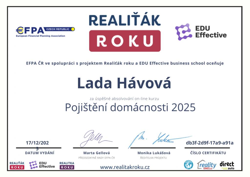 Jsem realitní makléřka, která dává do své práce maximum péče, poctivosti a lidského přístupu. Každý obchod beru jako osobní výzvu a každému klientovi věnuji tolik času, kolik potřebuje. Srdcem i s radostí pomáhám lidem najít domov, ve kterém se budou cítit opravdu dobře. Moje práce je pro mě posláním — a na výsledku je to znát.