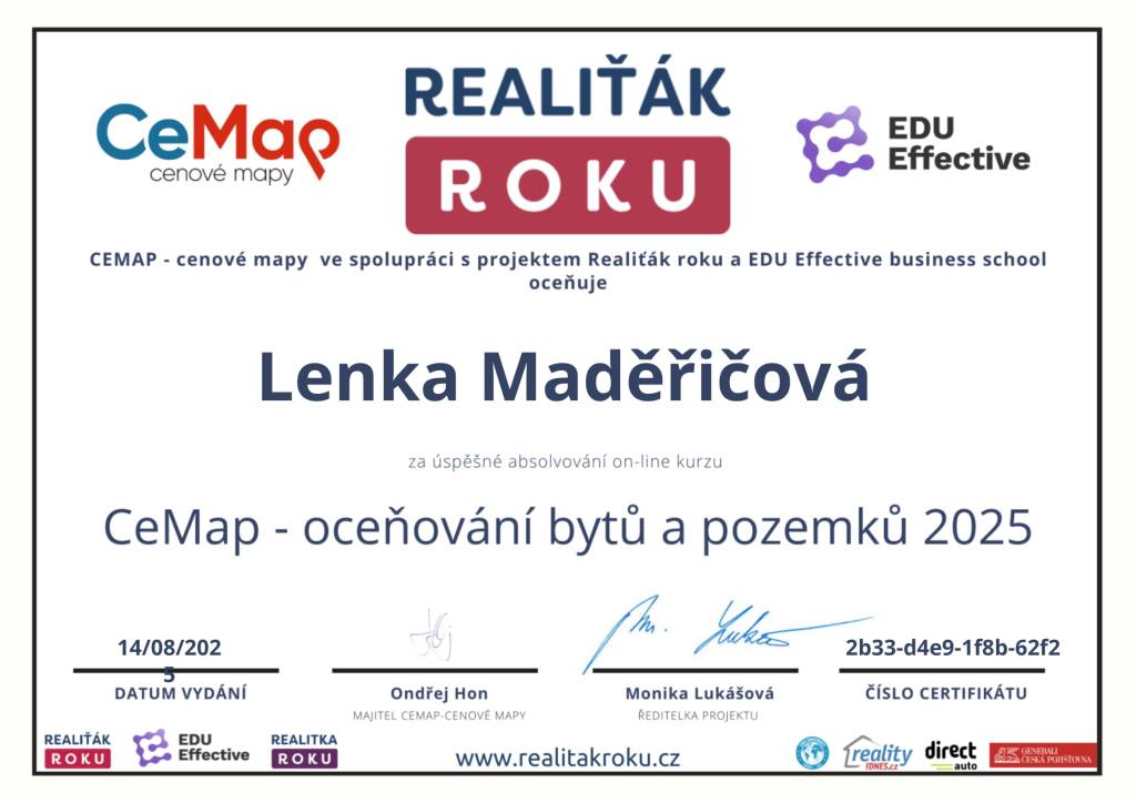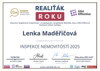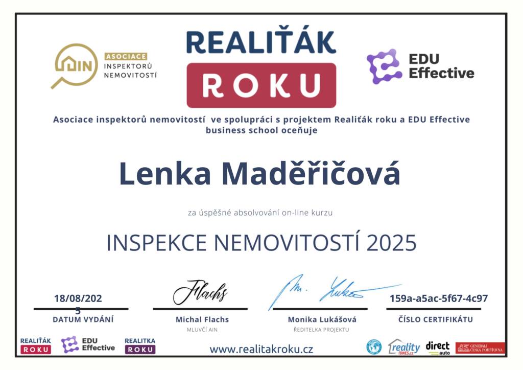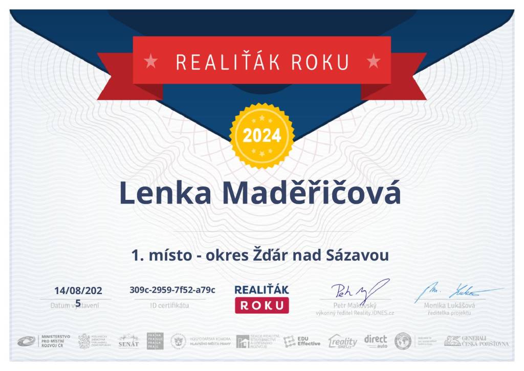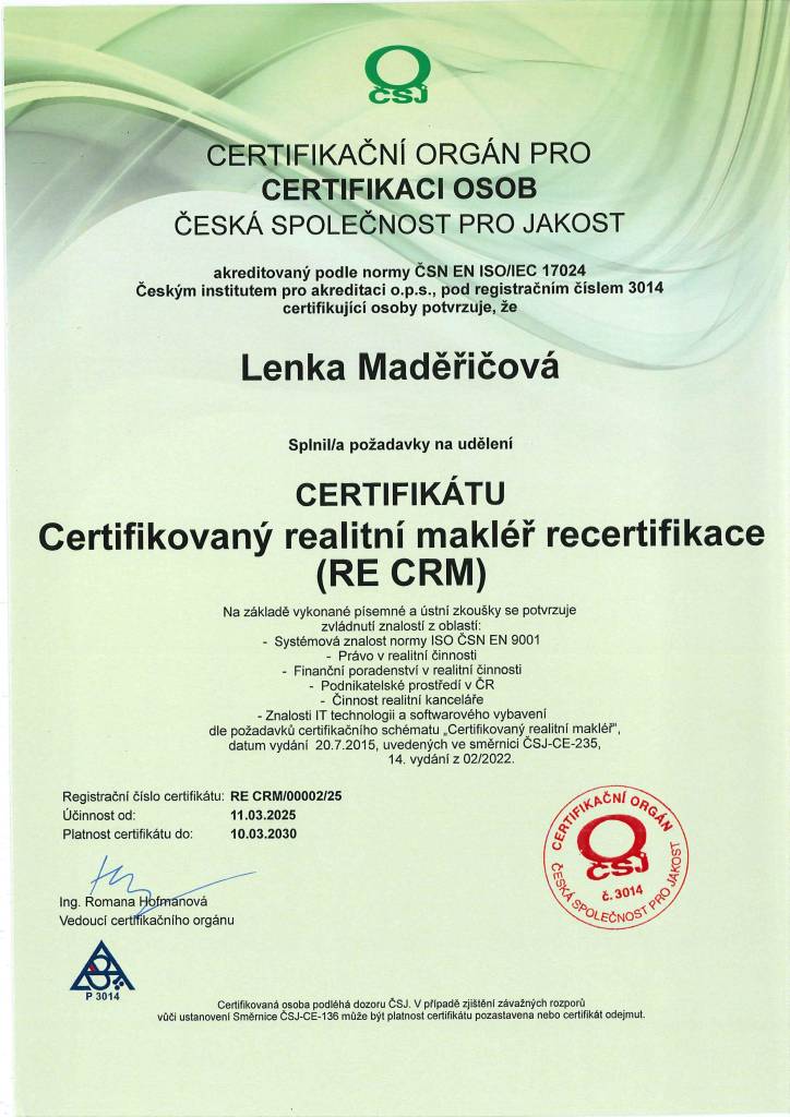 Prodej, nákup či pronájem nemovitosti jsou pro mě záležitosti, které zažívám jen párkrát za život. Po této trnité cestě mě skvěle provedla paní Lenka Maděřičová, včetně nečekaných zádrhelů, které vyřešila k mé spokojenosti a hladkému průběhu. Vím, že se na ni příště zase obrátím. V. Ž.