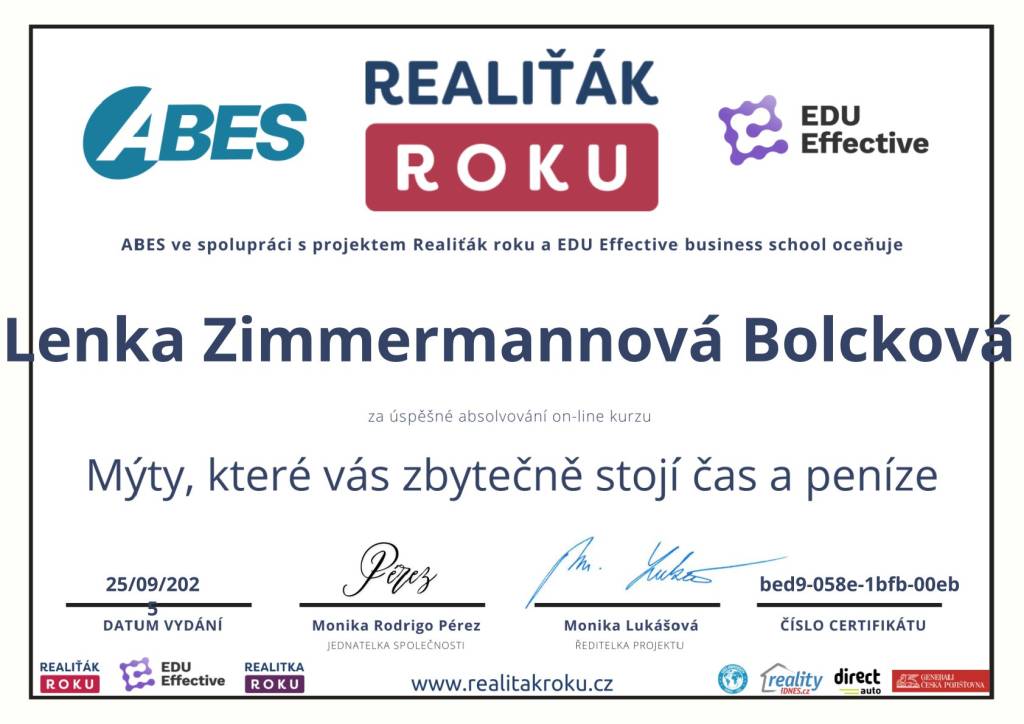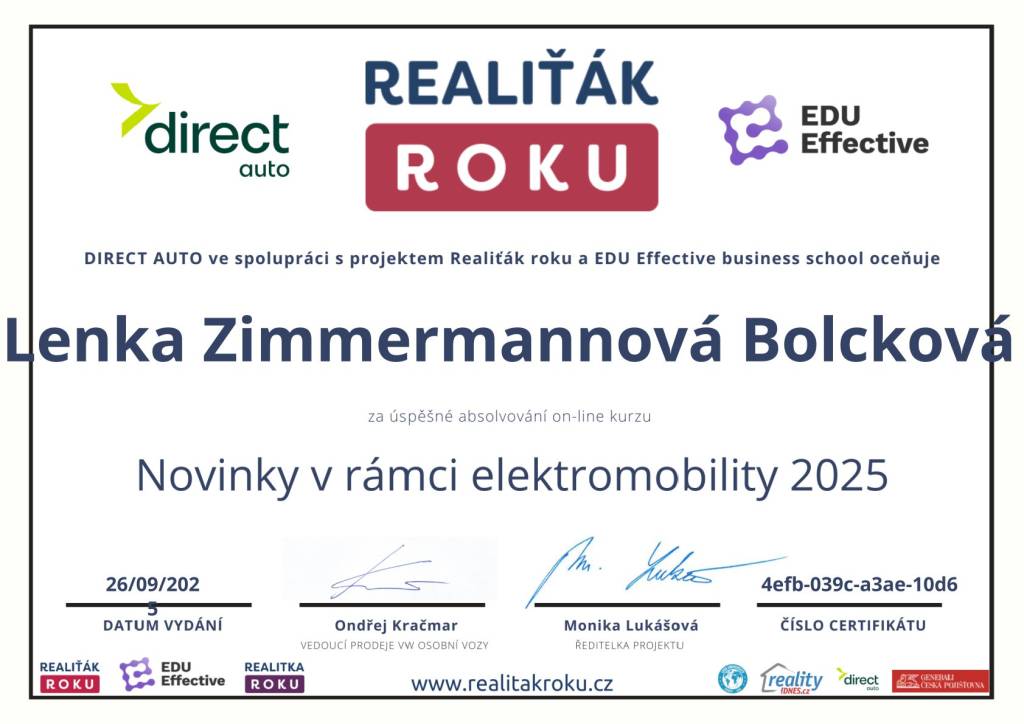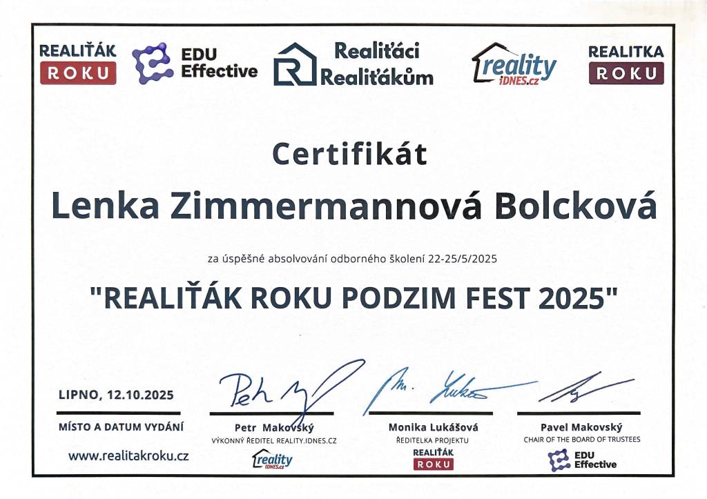 Prodej domu s Lenkou Zimmermannovou Bolckovou proběhl na jedničku. Správně nastavila cenu, absolvovala neskutečné množství prohlídek se zájemci. Pomohla nám i s dořešením právních vad. A krásně připravila nemovitost k prodeji profesionální aranží. Mohu jen doporučit. Při dalším prodeji mám jasno, kam se obrátit.