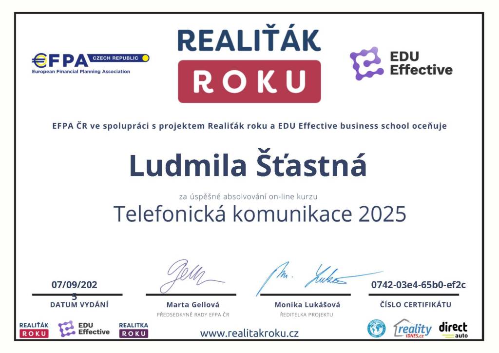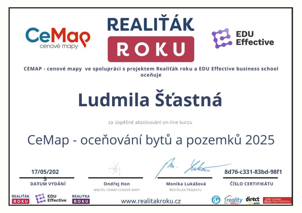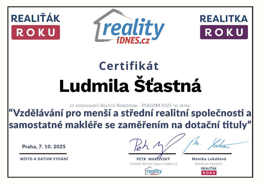 Chtěla bych tímto poděkovat Ludmile Šťastné, za její ochotu a profesionalitu při prodeji nemovitosti, kterou naše rodina vlastnila po generace. Paní Šťastná svým lidským přístupem zmírnila psychickou náročnost prodeje a vše klaplo na jedničku. Její služby mohu jen doporučit.