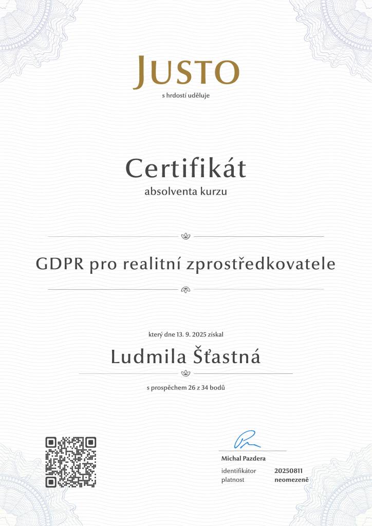 "Paní Šťastná nás překvapila, je příjemná, profesionální a trpělivě odpovídala na všechny naše všetečné otázky. Oceňujeme upřímnost a ochotu přizpůsobit se časovému rozvrhu klienta, i když je to mimo pracovní dobu. Oceňujeme i její trpělivost s námi a našimi dětmi. Jsme rádi, že jsme ji poznali."