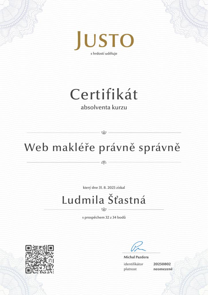 S prací a přístupem paní Šťastné jsem velmi spokojená a to již od prvního okamžiku. Oceňuji profesionální a zároveň velmi milé, ochotné a upřímné jednání. Paní Šťastnou jsem oslovila na základě doporučení a i já bych ji bez obav doporučila.