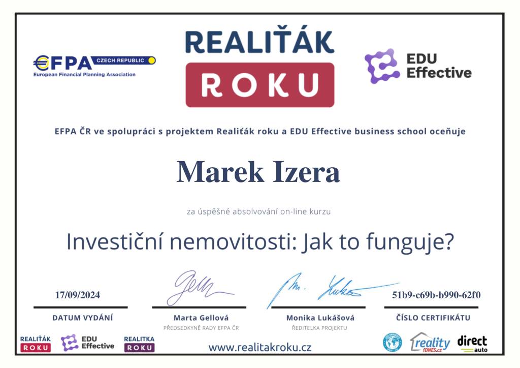 Věřím, že klient může přijít za svým realitním makléřem s důvěrou s žádostí o pomoc. Důvěřuje mu, věří v jeho profesionální přístup a schopnosti. Opravdu věří, že mu je schopen s jeho problémem skutečně a kvalitně pomoci. Mám vytvořené perfektní obchodní procesy a strategie a jsem schopen svému klientovi pomoc tak, aby se nemusel o nic starat. Vše probíhá v klidu a pohodě a klientovi se to vyplatí.