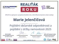 Marie Jelenčičová je skvela profesionalka, ktera zhodnocuje sve mnohalete zkusenosti na realitnim trhu ve prospech svych klientu. Je absolutne spolehliva a dokaze finalizovat danou transakci velmi rychle za velmi vyhodnych podminek pro sveho klienta. Pocitam s jejimi sluzbami i do budoucna."