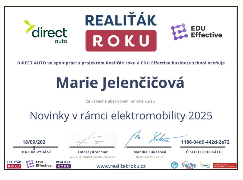Děkujeme za skvělou spolupráci, paní Jelenčičová! Spolupráce s paní Marií Jelenčičovou byla od začátku výjimečná. Pomohla nám zrealizovat tři úspěšné obchody a celý proces vedla s naprostou profesionalitou, přehledem a zároveň velkou lidskostí. Oceňujeme nejen rychlou a přesnou komunikaci, ale i ochotu vždy poradit a najít řešení ať už šlo o samotné obchody, nebo doporučení osvědčených řemeslníků na rekonstrukce, díky kterým jsme mohli ihned pokračovat dál. Těší nás, že máme možnost spolupracovat s makléřkou, která přemýšlí v souvislostech, je spolehlivá a příjemná. Už nyní víme, že se na ni rádi obrátíme i v budoucnu, včetně správy našich nemovitostí. Paní Jelenčičovou s radostí doporučujeme dál je radost s ní spolupracovat! V&M P.S.: Její humor je příjemným bonusem