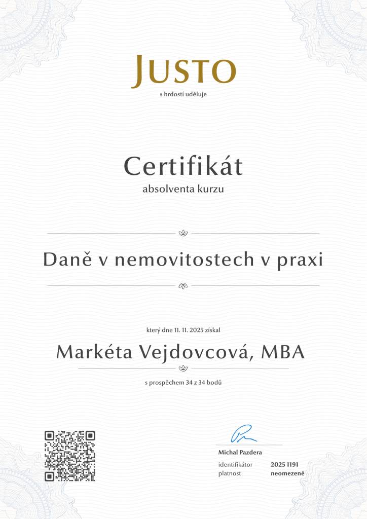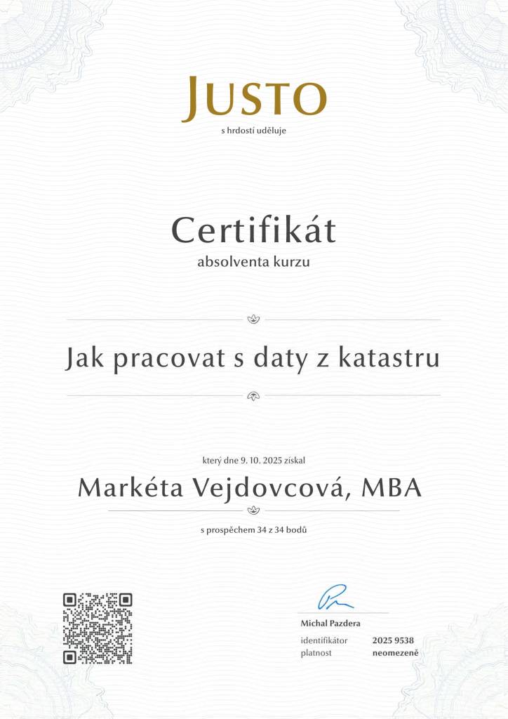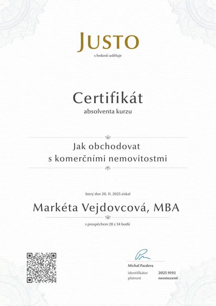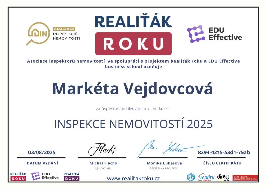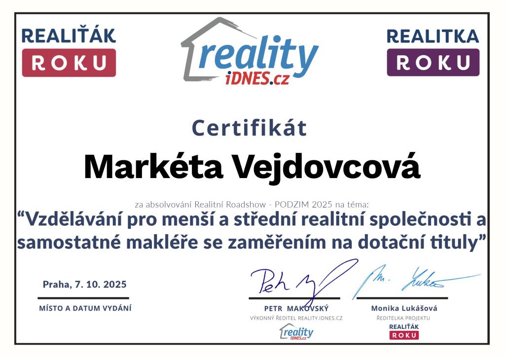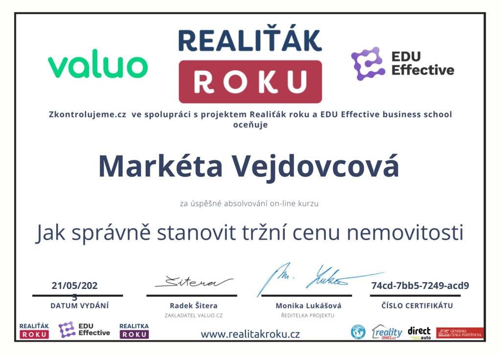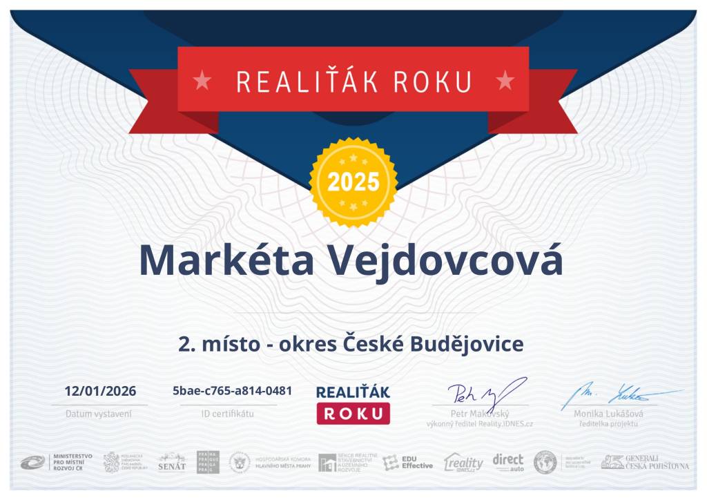 ,,Chtěl bych poděkovat paní Markétě Vejdovcové za pomoc při koupi nemovitosti. V rámci naší spolupráce není věc co bych mohl vytknout. Nebyl problém se kdykoliv a v rychlosti domluvit na řešené problematice a vždy ku prospěchu všech zúčastněných. Byl jsem velice spokojen s profesionálním jednáním a vřelým lidským přístupem. Proto závěrem ještě jednou paní Markétě Vejdovcové děkuji."