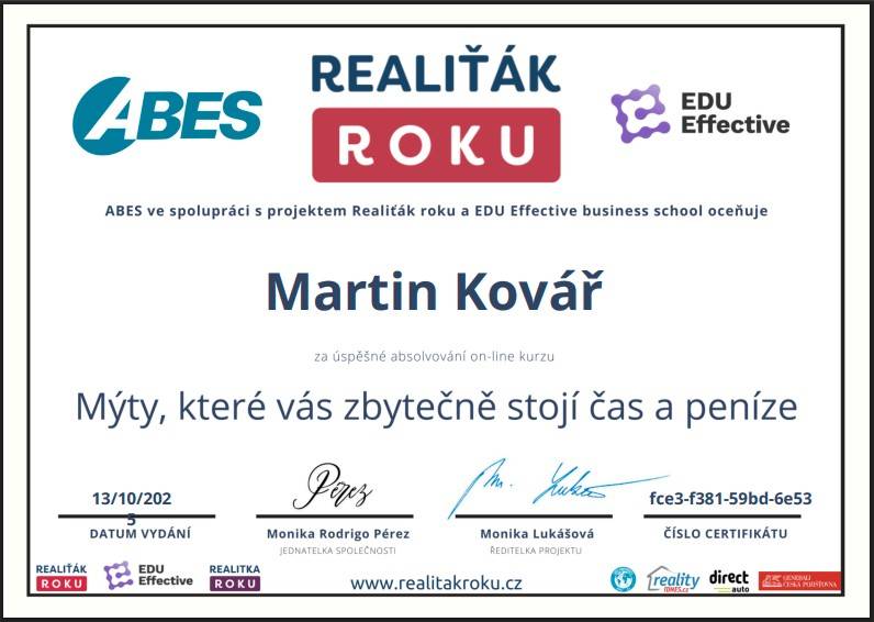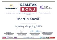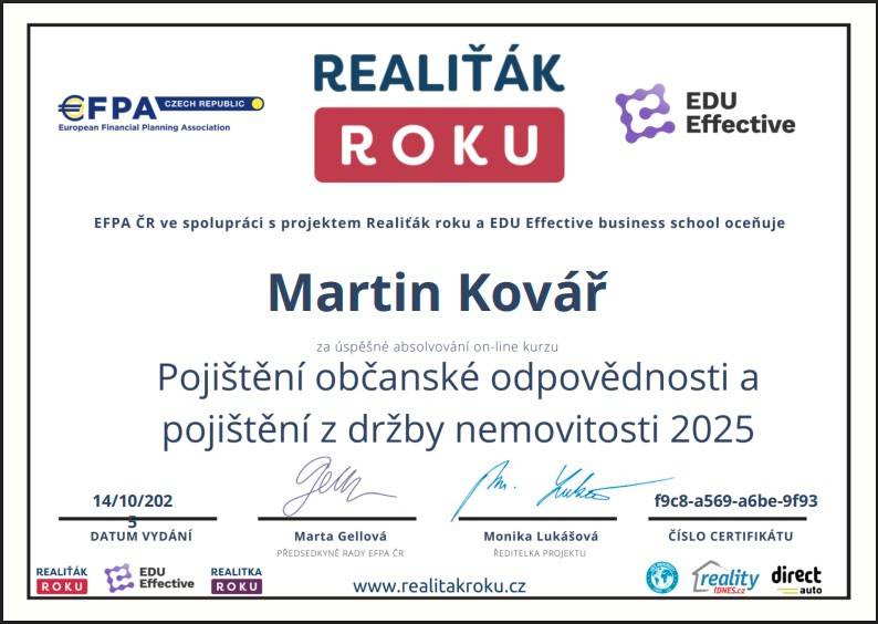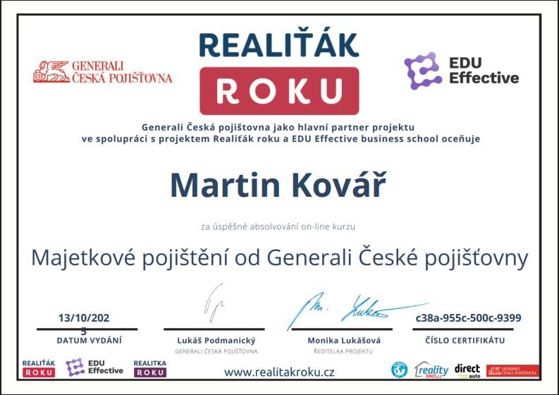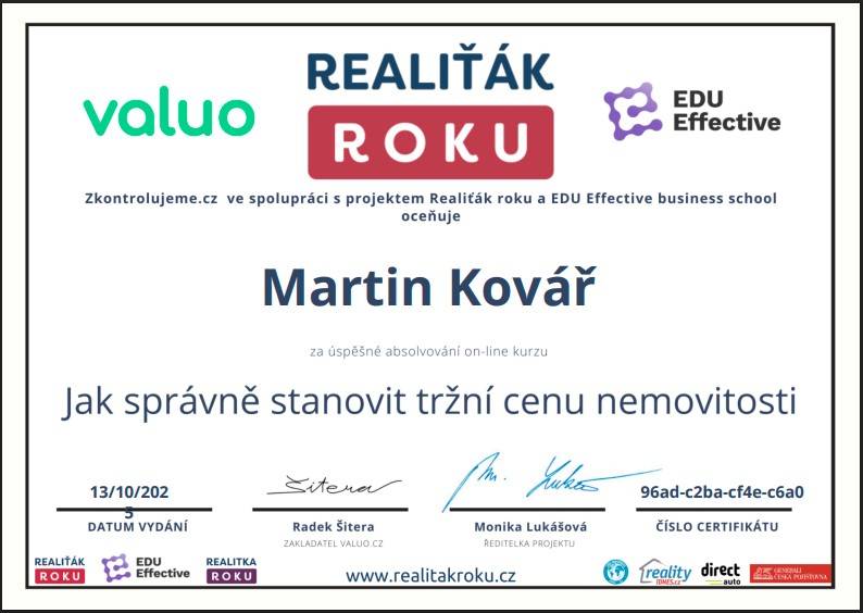 Se službami pana Ing. Martina Kováře jsem byl maximálně spokojen. Jeho služeb jsem využil při hledání nových nájemníků do mého volného bytu. Musím vyzvednout perfektní prezentaci bytu a snahu vybrat ze zájemců toho nejvhodnějšího nájemníka. O průběhu jednání jsem byl podrobně informován a každý můj dotaz byl zodpovězen téměř okamžitě. Jeho profesionální přístup, spolehlivost, vstřícné jednání, rychlost a efektivita vedly k uzavření smlouvy po 14 dnech od zadání zakázky.