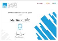 Pan makléř Martin Kubík nás jako jediný přesvědčil, že při pronájmu či prodeji nemovitosti postačí pouze jeden, avšak velmi schopný, solidní a zodpovědný realitní makléř.S panem Kubíkem jsme dlouhodobě velmi spokojeni. Vážíme si jeho profesionality a skutečnosti, že vždy dokázal v krátkém čase naši nemovitost pronajmout, či prodat. K panu Kubíkovi máme absolutní důvěru. Myslíme si, že jeho přístup ke klientovi je nad rámec jeho běžných pracovních povinností.
