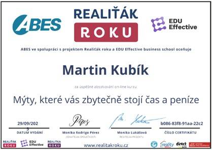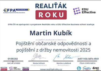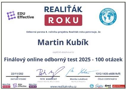 Byt, o kterém všichni tvrdili, že ho nikdy nedokážu prodat. Prodej nemovitosti jsem svěřil do rukou panu Martinovi Kubíkovi. V tu chvíli jsem ještě nemohl tušit, že lépe jsem zvolit opravdu nemohl. Jeho proaktivním přístupem jsem byl až mile zaskočen. Jen stručně, jeho služba je kompletní. Od úklidu a drobné rekonstrukce nemovitosti, homestagingu, videoprohlídky, propagace až k podpisu kupní smlouvy, kterou to ale stále nekončí. Svoji práci odvádí až do finálních detailů, včetně komunikace s katastrem, bankami a advokáty. Jediné co jsem musel za celou dobu udělat, bylo podepsat několik precizně připravených smluv, což mi ušetřilo nejednu vrásku a hlavně spoustu času.