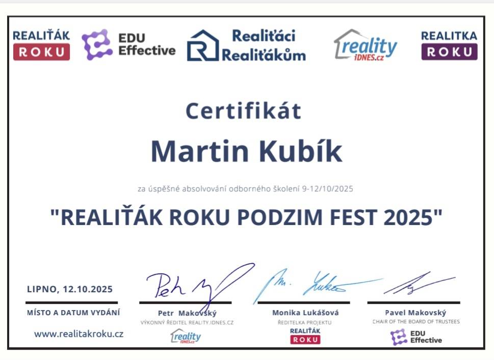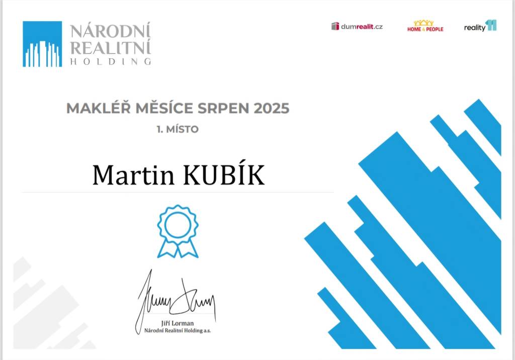 Děkuji za skvěle odvedenou práci od A do Z. Ocenil bych v dnešní době na realitním trhu velkou přehlednost a umění zajistit správnou cenu ke spokojenosti všech stran. Takže doporučení z mé strany určitě kladné a díky ještě jednou za práci pane Kubík a věřím do budoucna, že zase něco vymyslíme. Hodně zdaru Vám a díky.