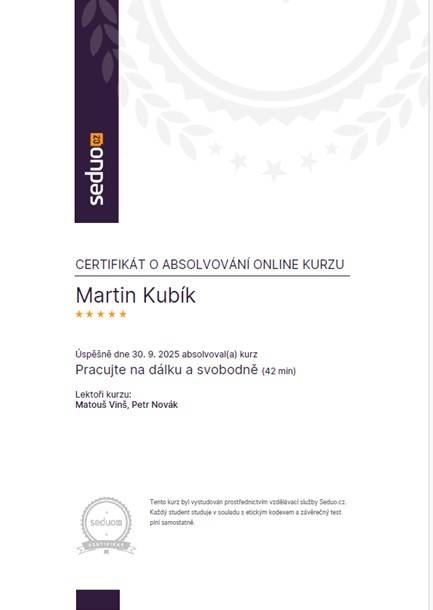 Cením si spolupráce s p. Martinem Kubíkem, zvláště jeho pro-klientskou orientaci a pochopení pro klientova „specifika“ ;-).