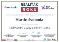Přidávám se s kladným doporučením na pana makléře Martina Svobodu. Rychlé a super vyřízení. Pan Svoboda byl velmi ochotný a velice mi pomohl s věcmi okolo pronájmu. Zatím nejlepší zkušenost s realitkou , určitě mužů doporučit.