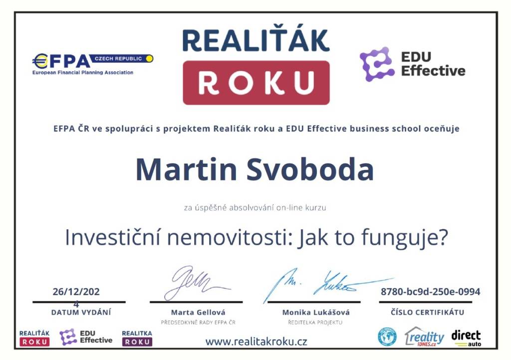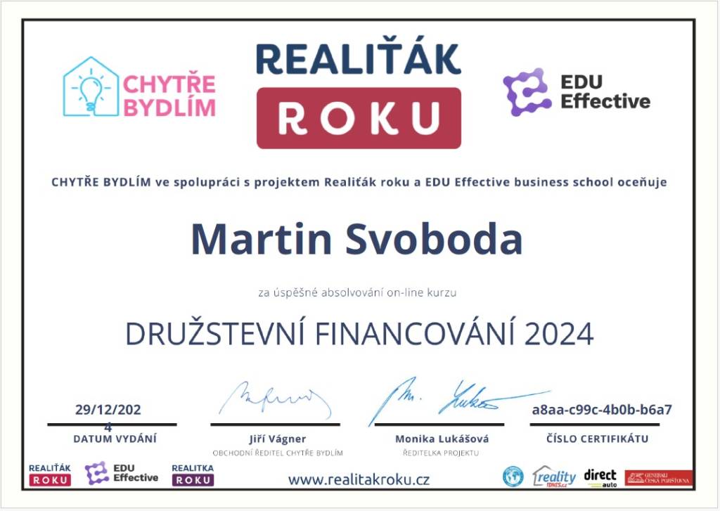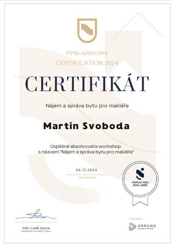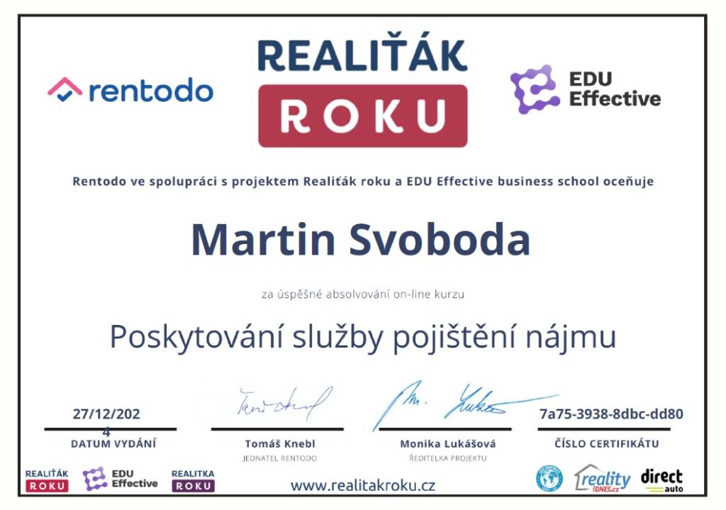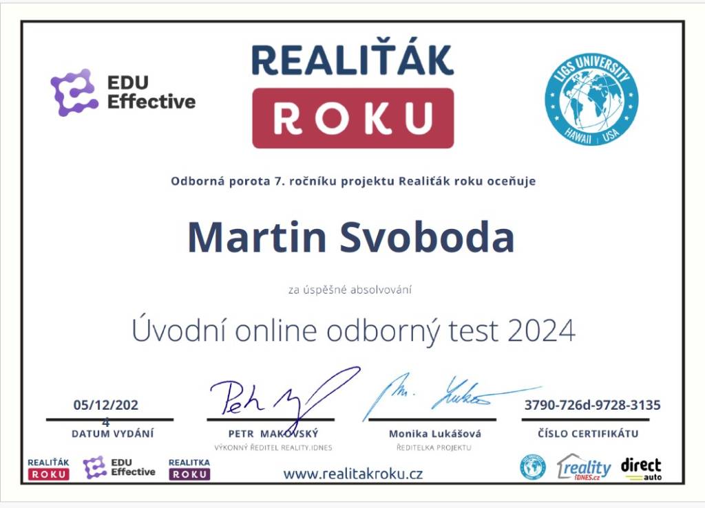 Zvláštní poděkování bych chtěl vyjádřit panu Martinovi Svobodovi, který byl mým osobním makléřem. Jeho přístup byl nejen odborný, ale také velmi lidský. Pan Svoboda se mi věnoval s maximální pozorností a trpělivostí, což mi dodalo pocit jistoty během celého procesu.