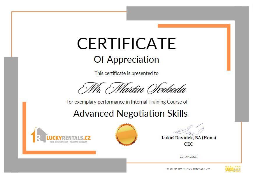 Služby realitní kanceláře Lucky Rentals CZ, pana Martina Svobody, jsem já i moje rodina využily opakovaně a vždy k naší naprosté spokojenosti. Oceňuji profesionální přístup a po všech stránkách korektní jednání pana Svobody i jeho maximální pochopení pro potřeby klientů. Vše bezvadné. Doporučuji.