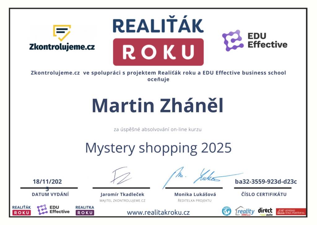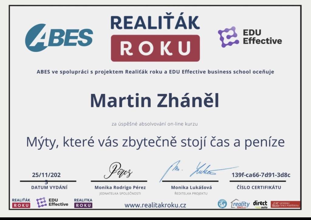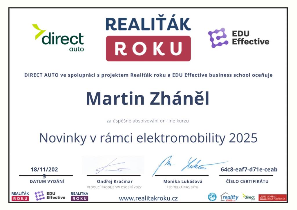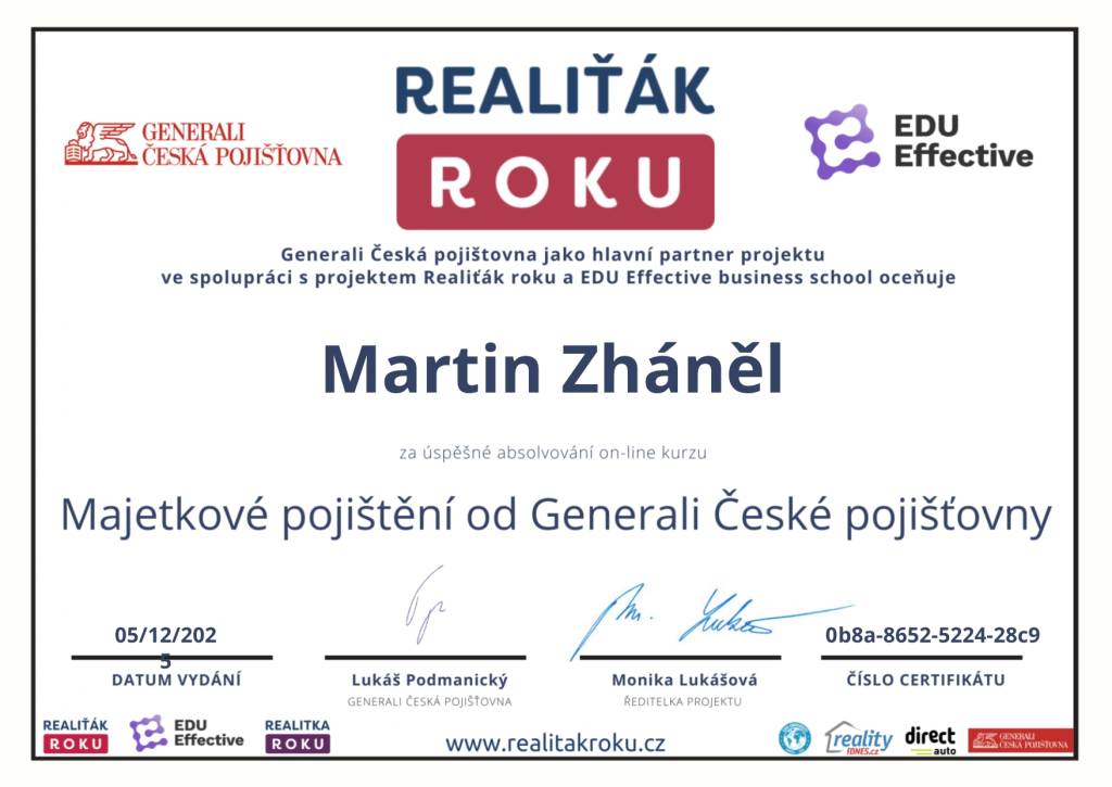 Pan Martin Zháněl je profesionál, profesionál a ještě jednou profesionál. A současně má opravdu lidský přístup k řešení předmětné problematiky, tj. k práci realitního makléře. Velice si vážím jeho přístupu a pokud budu mít možnost, budu jej propagovat u případných dalších prodejů u mých známých a kolegů. Takových lidí jako je Martin Zháněl by mělo být co nejvíce. Je to pro mě jednoznačně jednička ve svém oboru.