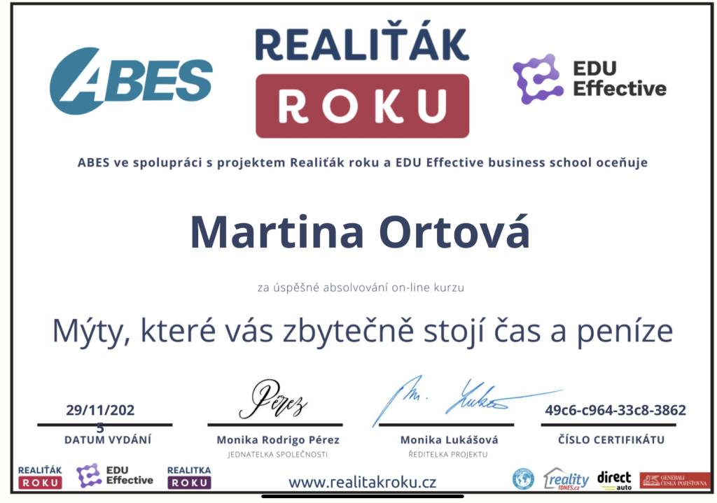 Moc děkuji paní Martině Ortové a celému týmu Reality Ortová za skvělou spolupráci při prodeji mého bytu. Paní Ortová je velice profesionální, ochotná a vše probíhalo naprosto hladce. O každém kroku mě průběžně informovala a poskytla cenné rady, které celý proces urychlily a usnadnily. Byt se podařilo prodat rychle a za skvělou cenu. Je vidět, že paní Ortová své práci rozumí a dává do ní srdce. Vřele doporučuji její služby všem, kdo hledají spolehlivého realitního makléře.