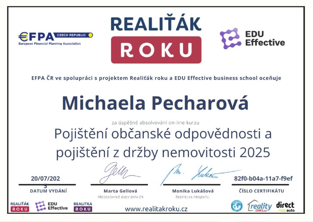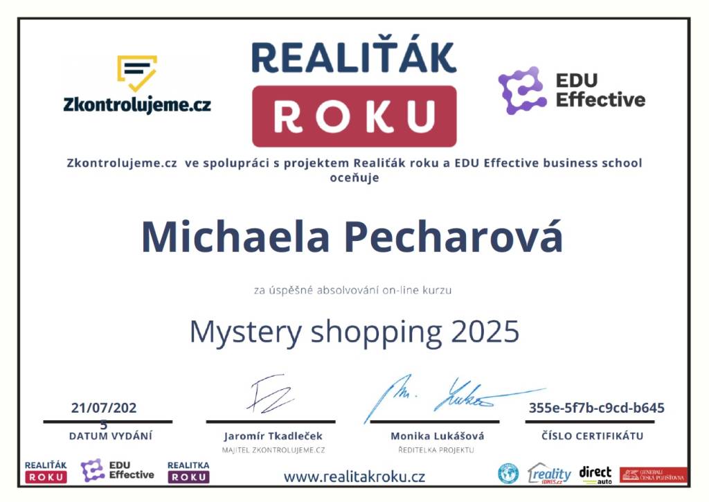 Jsem moc spokojený, jsem rád za naši spolupráci a určitě bych doporučil paní Pecharovou, která je moc odpovědná a naprostá odbornice ve svém oboru. Děkuji moc.