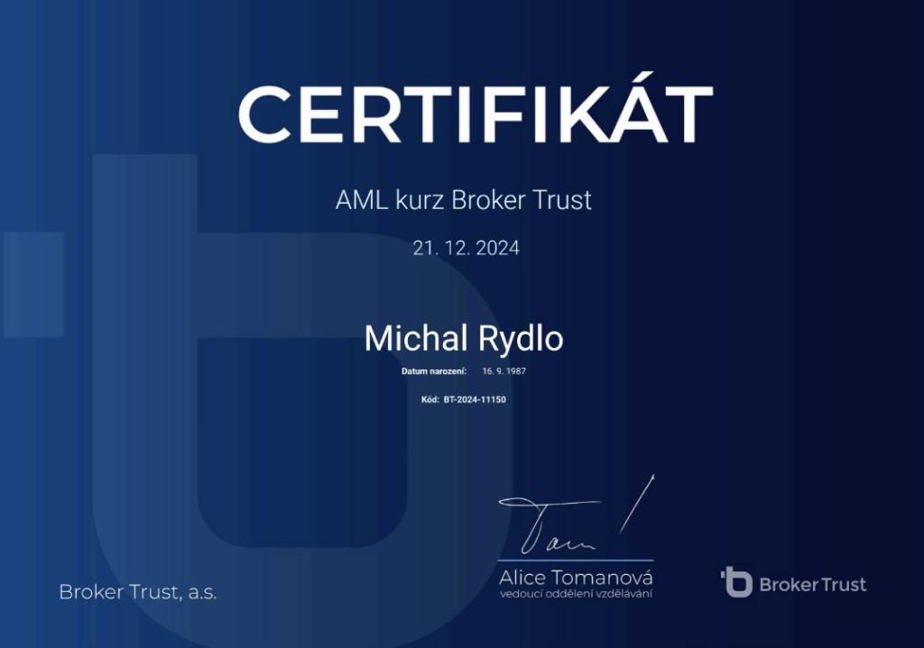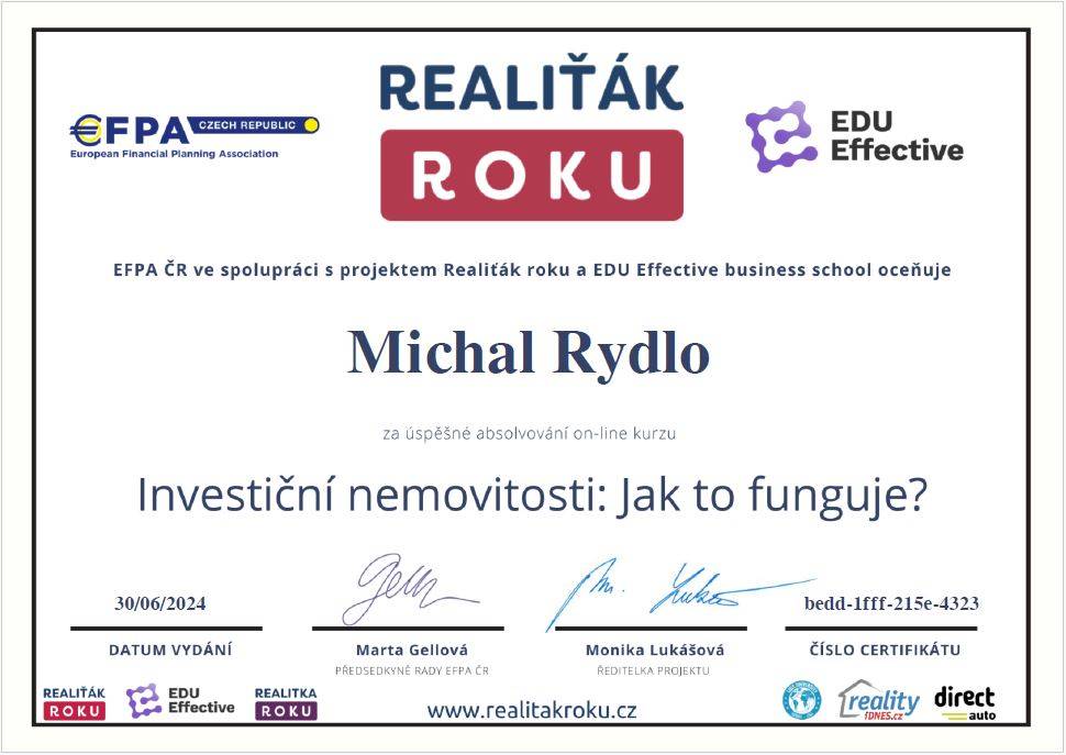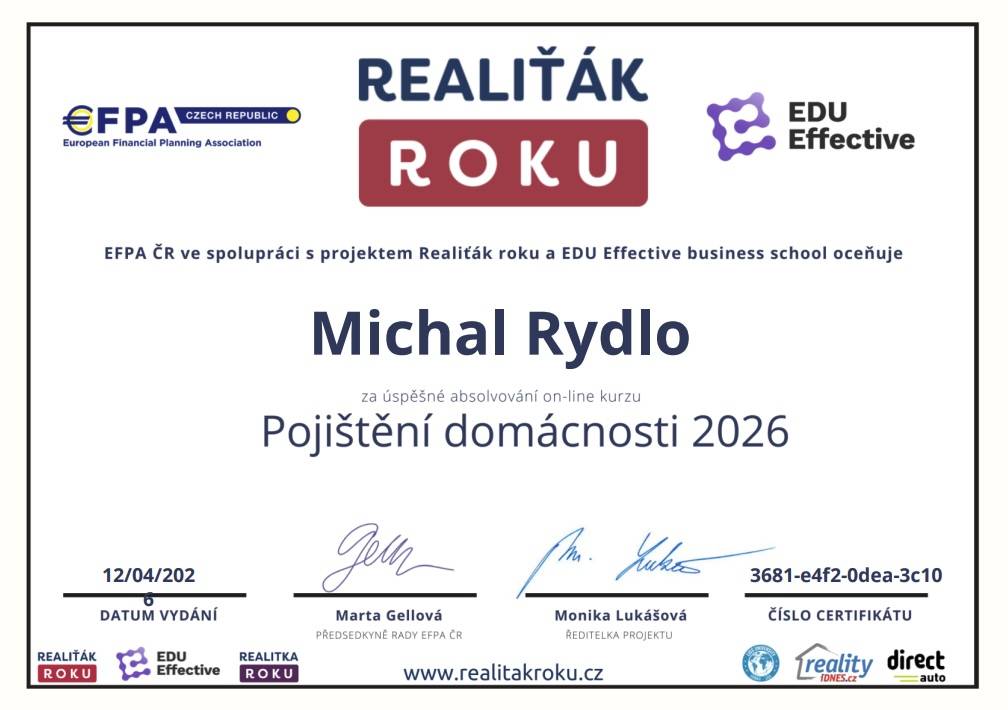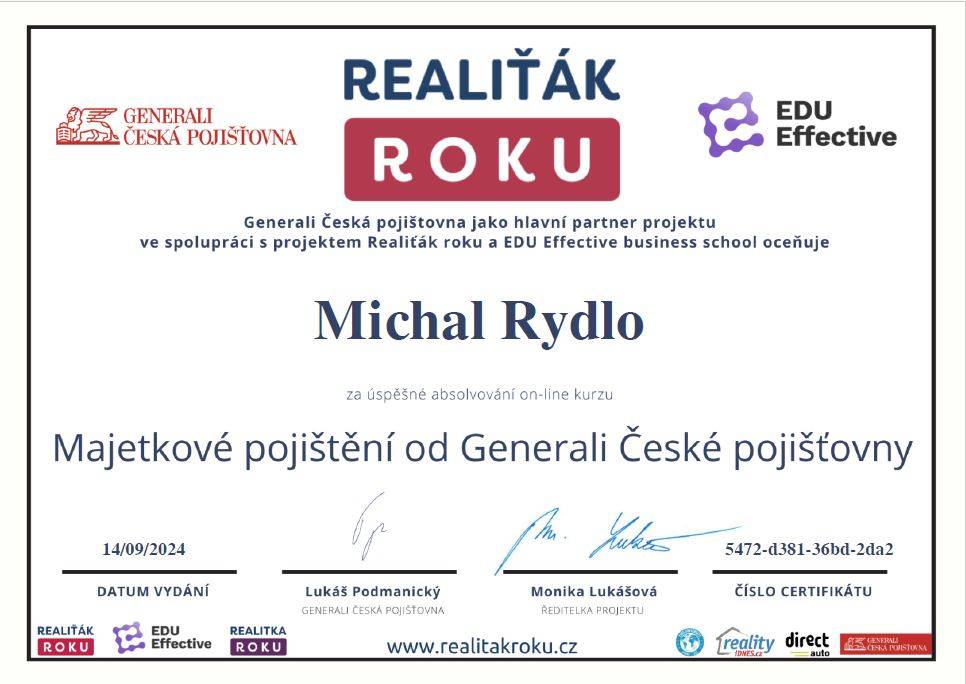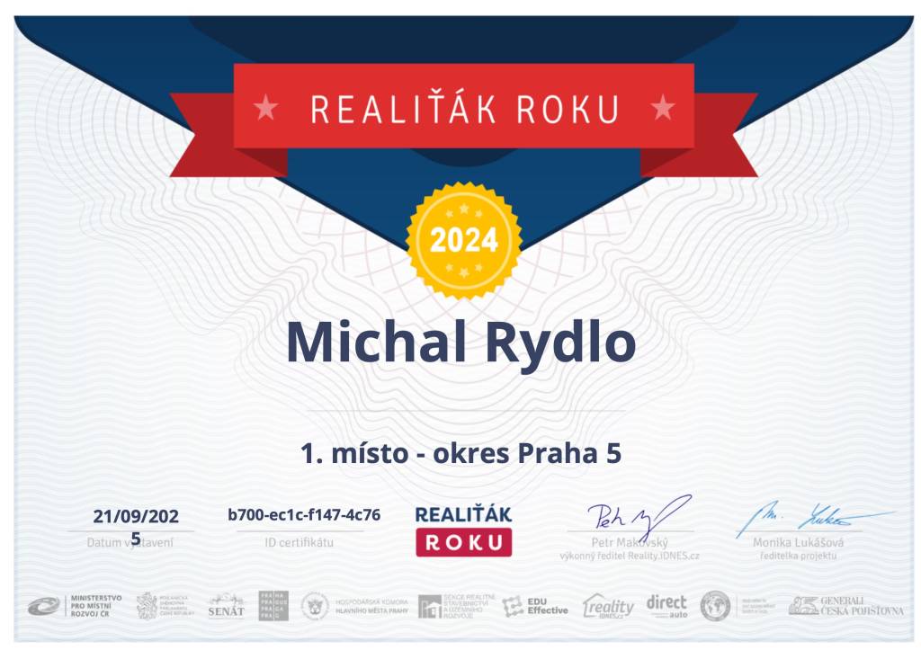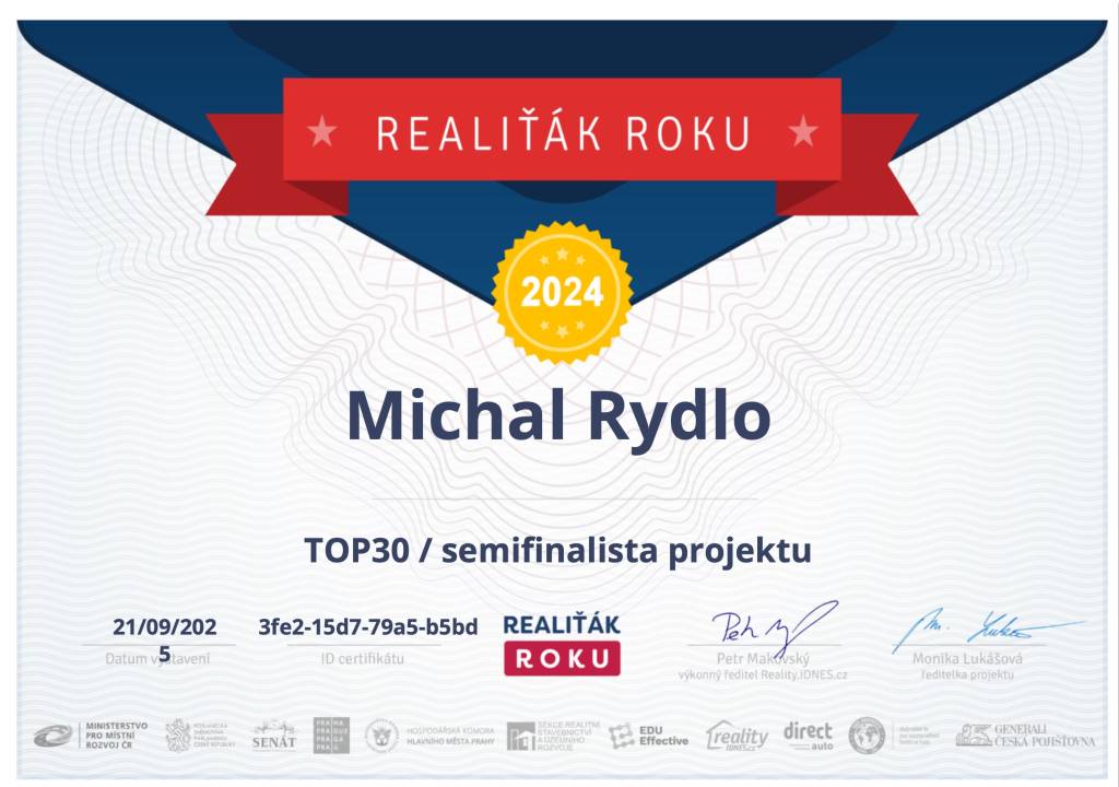 Spolupráce s Ing. Michalem Rydlem byla naprosto skvělá. Všechno hned vyřešil, komunikace byla bezvadná a profesionální. Udělal perfektní prezentaci nemovitosti, vždy ochotně a dobře poradil a vysvětlil vše potřebné. Vřele doporučuji každému, kdo hledá spolehlivého a schopného makléře se kterým je radost spolupracovat.