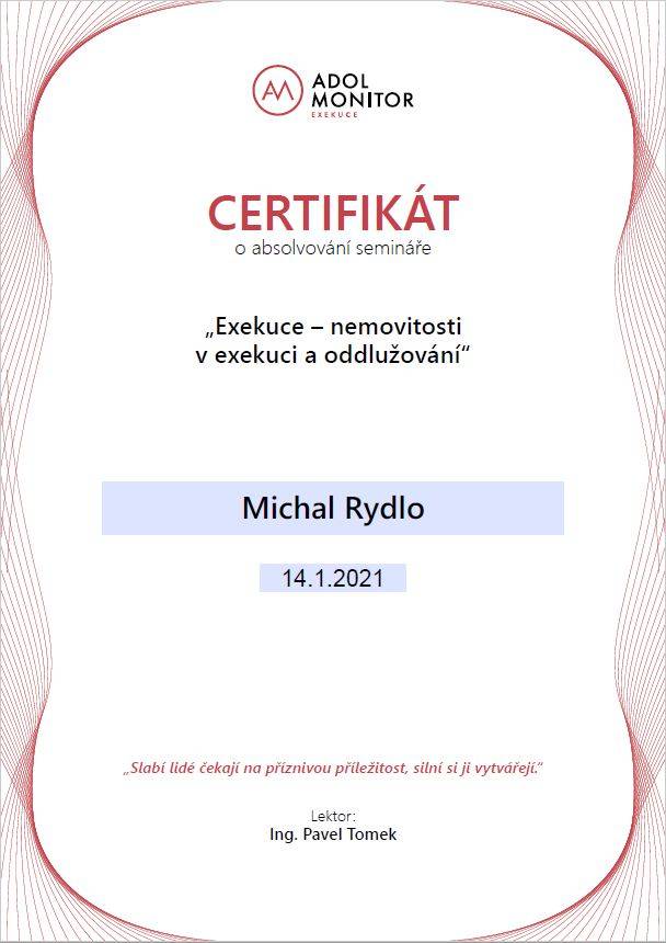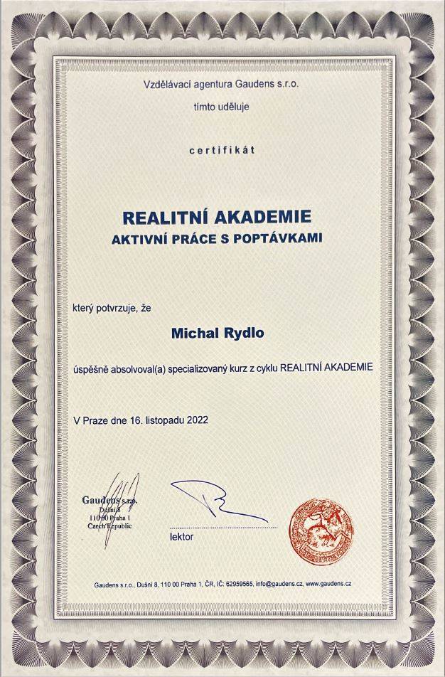 Profesionalita, odbornost a ochota pomoci. To jsou základní aspekty práce pana Michala Rydla. V případě, že uvažujete o prodeji či nákupu nemovitosti, doporučuji využít jeho služeb.