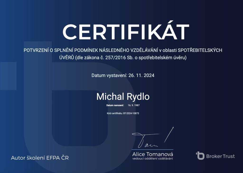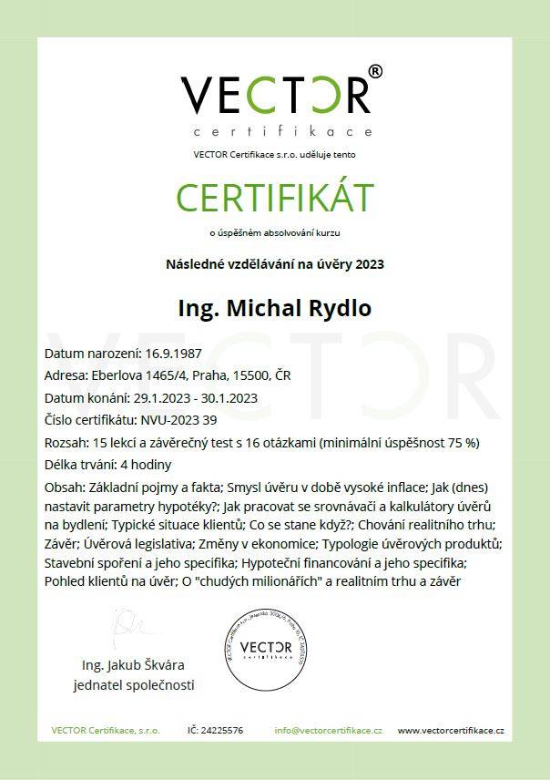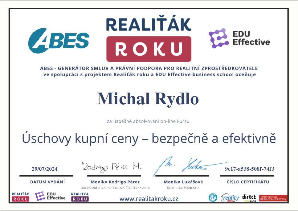 Pan Michal Rydlo je velmi profesionální,ochotný a vstřícný.Také musím hodnotit i jeho lidský přístup,Myslím si,že pracuje i nad rámec svých povinností,ke každému problému přistupuje individuálně a snaží vše vyřešit.Koupě našeho bytu se neobešla bez problémů,ale pan Rydlo vše hravě zvládl.Jeho služby velmi doporučuji.