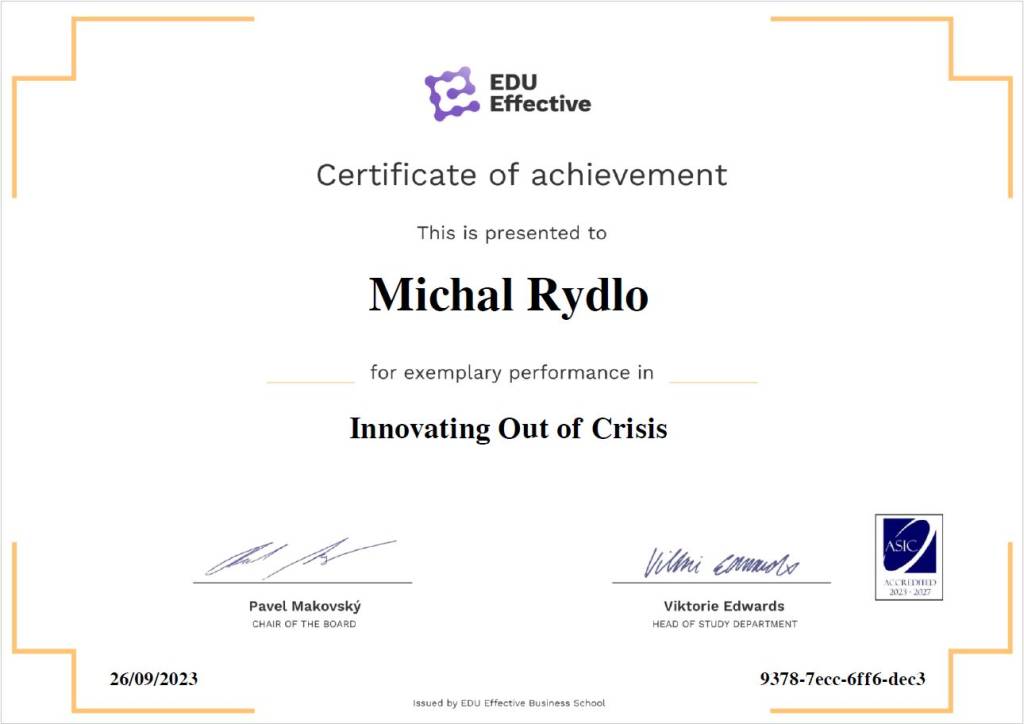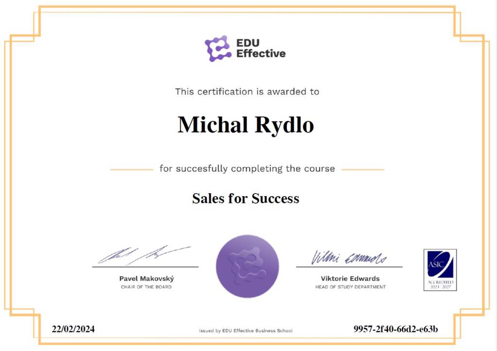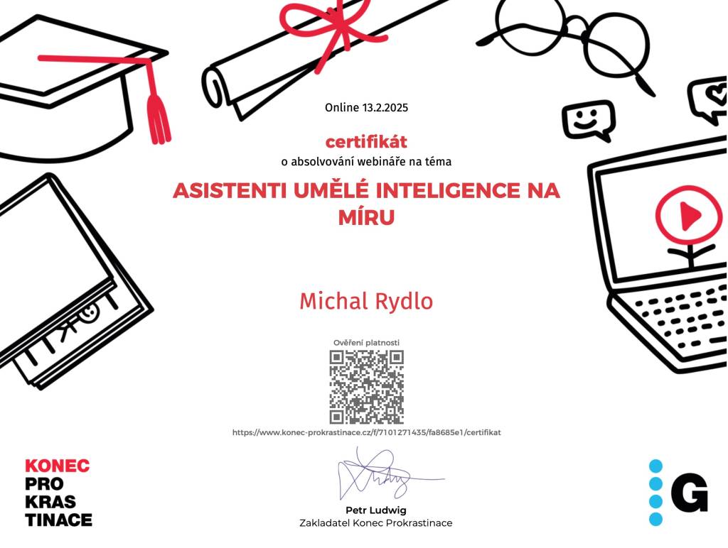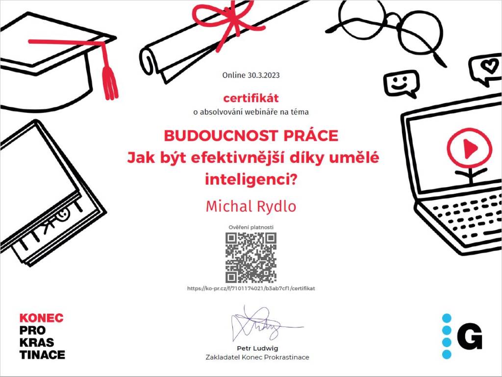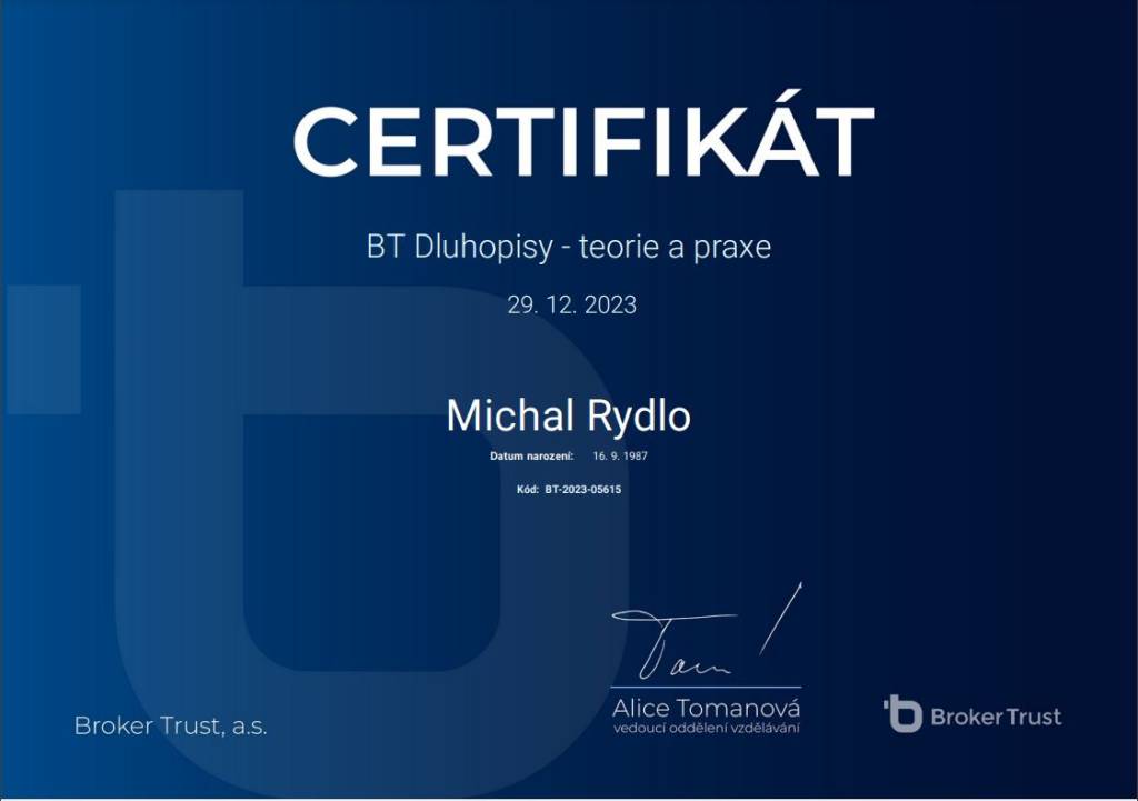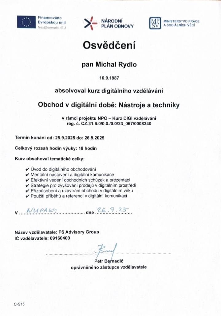 Pane Rydlo, jsem Vám nesmírně vděčný za vše, co jste pro mne udělal. Ještě jednou Vám moc děkuji za profesionální přístup.