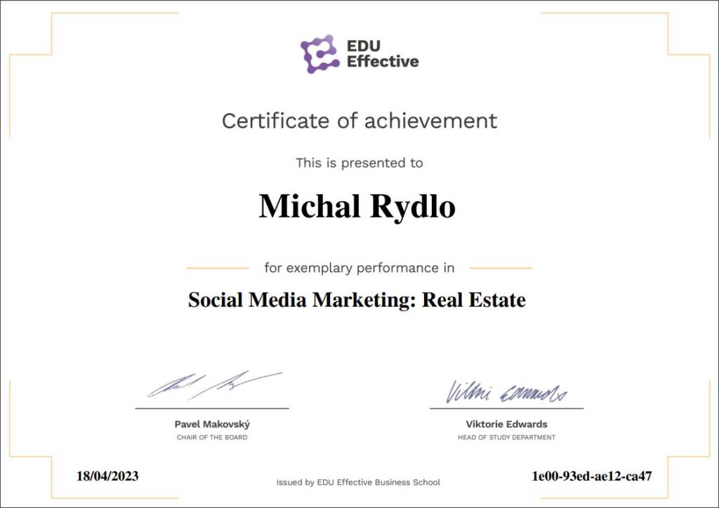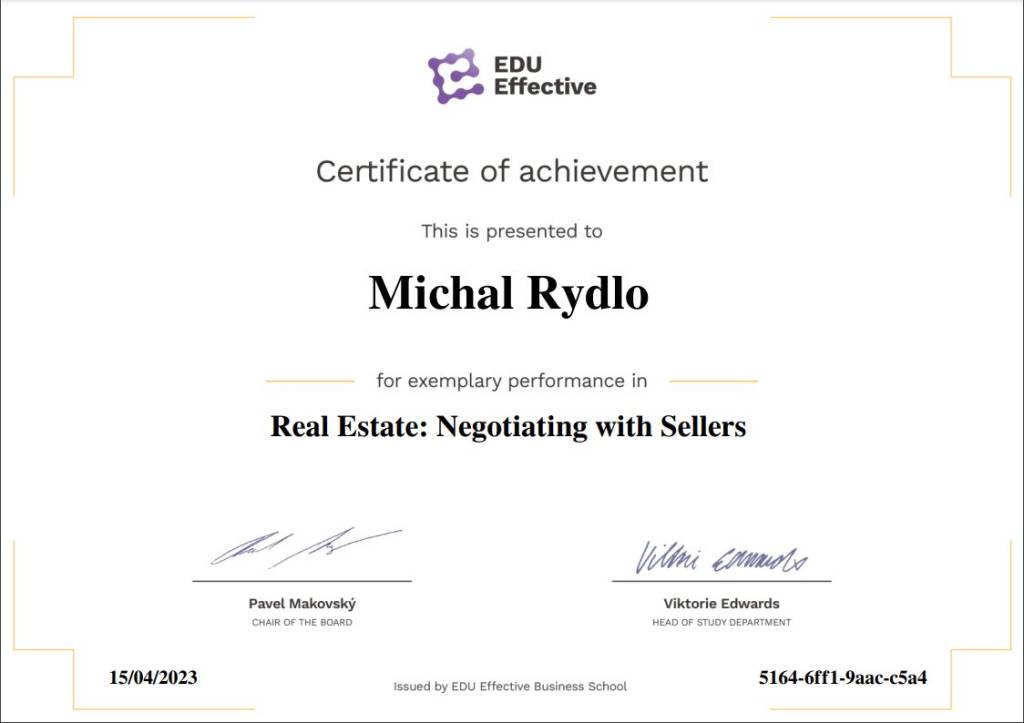 Pan makléř Michal Rydlo již na první schůzce působil jako znalý profesionál v tomto oboru a na všechny mé otázky fundovaně odpověděl a přidal navíc ještě rady a doporučení. Při druhém setkání mi navrhl přesný postup a strategii prodeje s využitím propagačních videí k oslovení budoucího kupce. Bylo rozhodnuto.