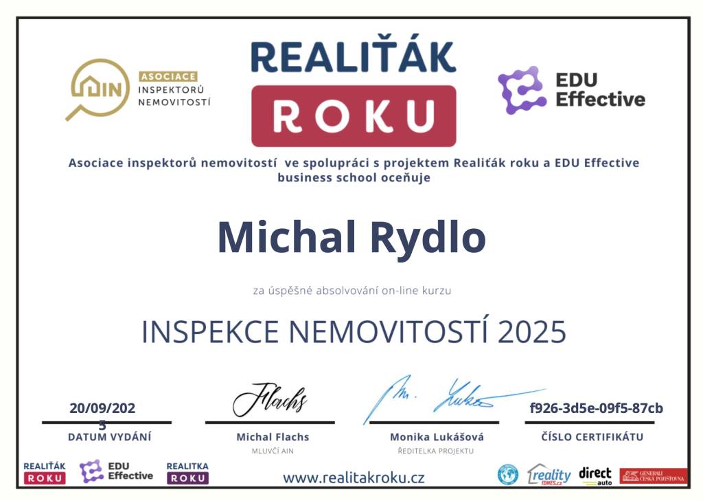 S panem Ing. Michalem Rydlem jsme byli maximálně spokojeni. Celý proces prodeje/prohlídky probíhal profesionálně a s výbornou, promptní komunikací. Na všechny naše dotazy dokázal rychle a srozumitelně odpovědět – a pokud něco nevěděl hned, obratem si informaci ověřil přímo u majitele a ozval se zpět v krátkém čase.