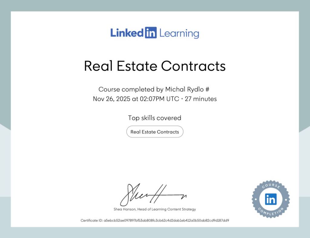 Michal helped us a lot in our purchasing process. He was always very kind and explained us everything in details. He arranged everything so the whole process was smooth and we didn't had to deal with anything. If you're looking for an honest and reliable real estate agent, I really recommend him!