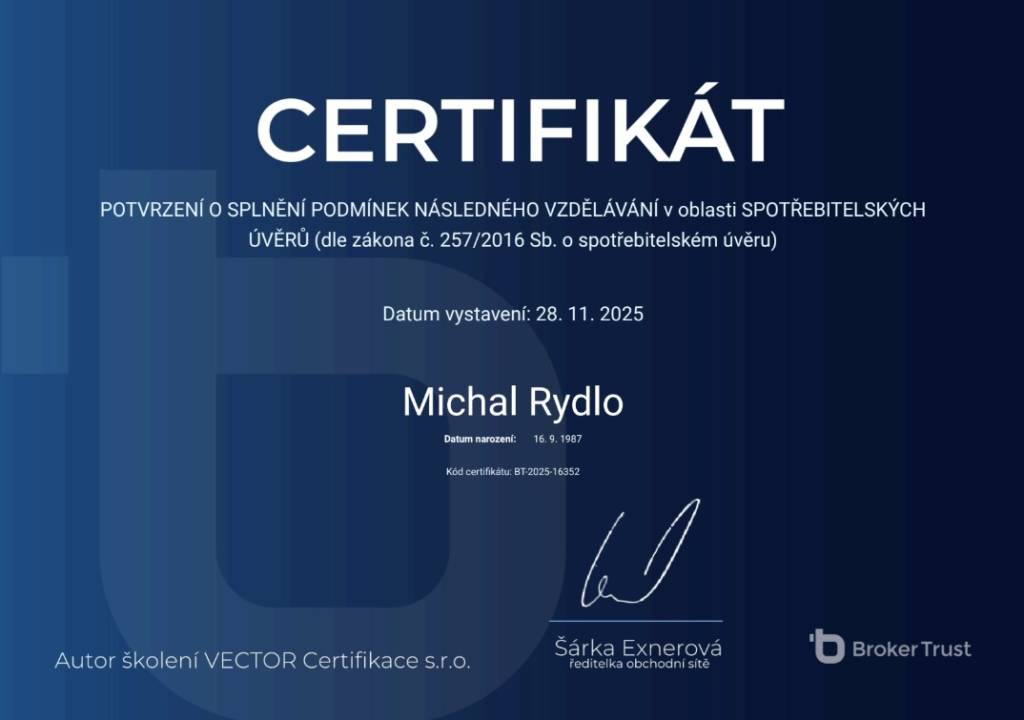 S panem Michalem Rydlem jsme spolupracovali při koupi domu a byli jsme velmi spokojeni. Provedl nás celým procesem včetně komunikace s úřady, informoval o aktuálním stavu i dalším postupu