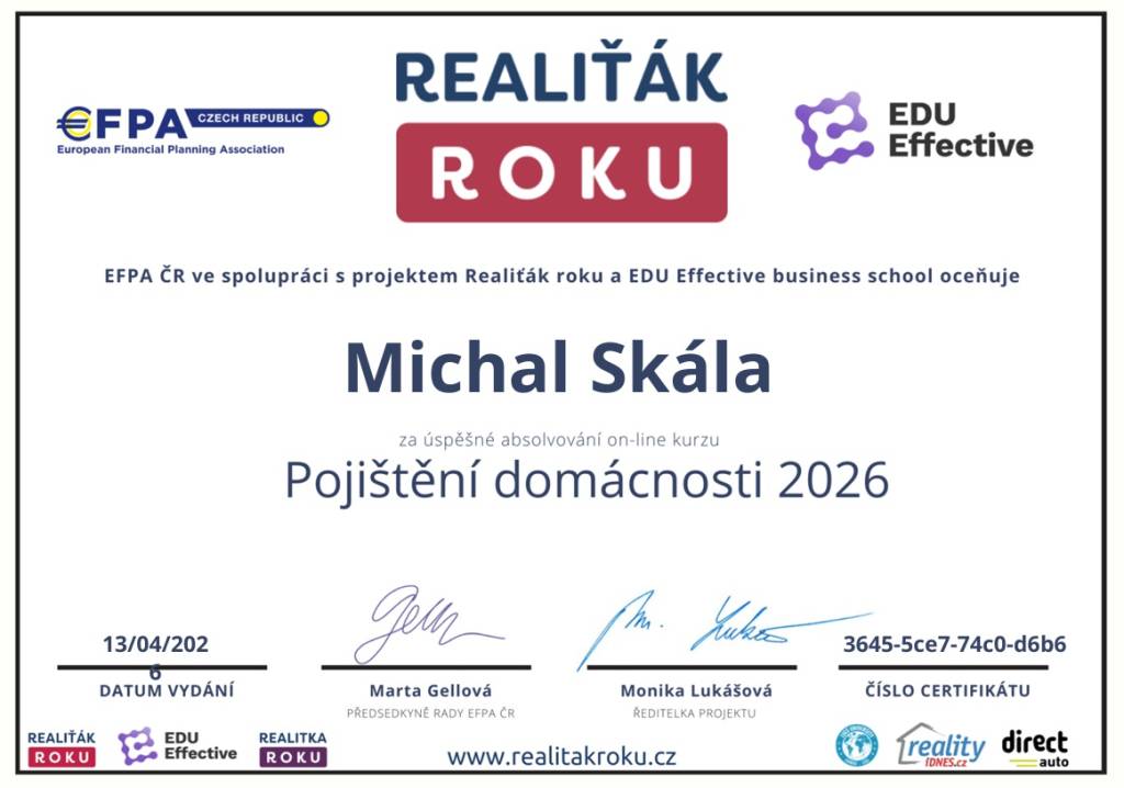 Se službami pana Skály jsem byla velice spokojená. Pan Skála je ochotný, pečlivý s profesionálním přístupem. Pokud bych do budoucna hledala makléřské služby, určitě bych znovu oslovila pana Skálu.