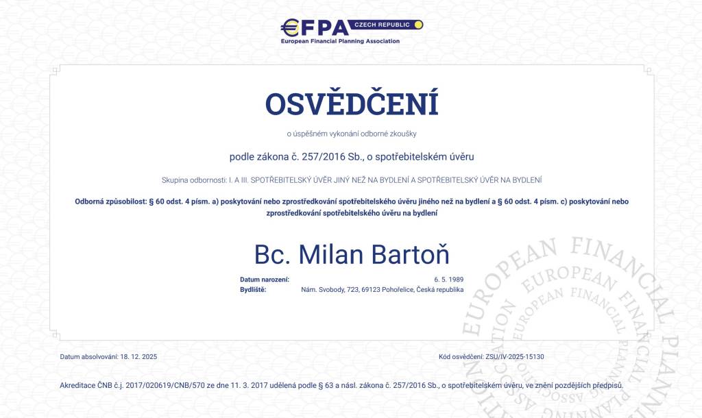 S makléřem Milanem Bartoněm jsem byla opravdu velmi spokojená. Měla jsem možnost srovnání s jiným makléřem a musím říct, že rozdíl byl obrovský. Tento makléř prodal nemovitost za výrazně vyšší cenu, než jsem původně očekávala. Od začátku měl vše perfektně nastavené, byl vždy připravený, ochotný a pravidelně mě informoval o průběhu prodeje. Nemusela jsem se o nic starat – vše zařídil. Děkuji a rozhodně doporučuji dál! Zuzka