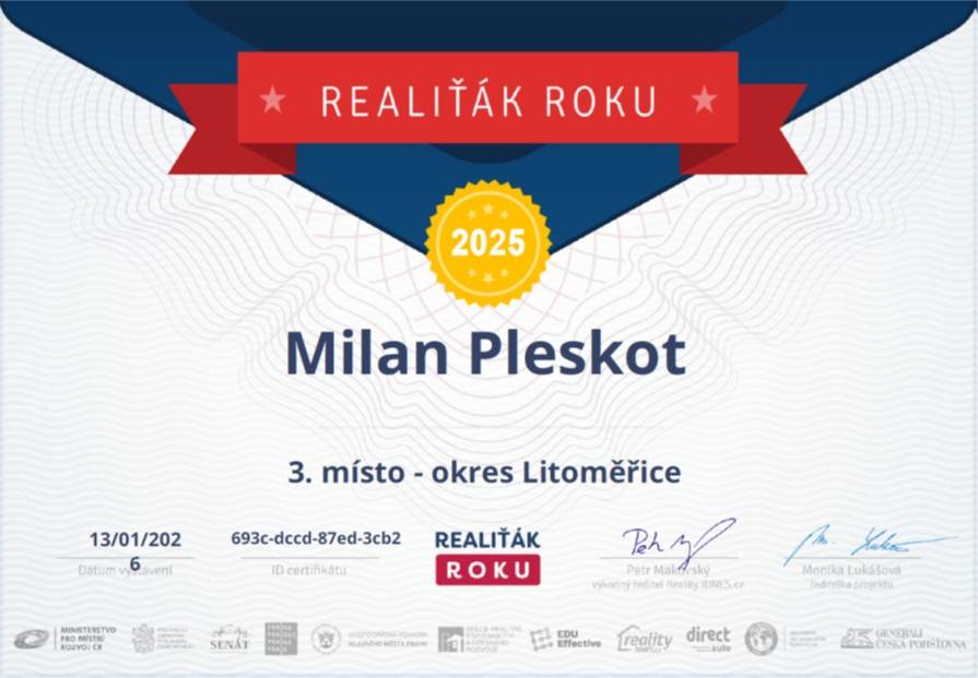 S panem Milanem Pleskotem jsem měl tu čest spolupracovat při prodeji podílu ½ nemovitosti a mohu ho s čistým svědomím doporučit každému, kdo hledá profesionální a férový přístup. Od prvního setkání působil velmi důvěryhodně, byl dobře připravený a dokázal srozumitelně vysvětlit celý proces. Během celé spolupráce dostál všech svých závazků, jednal rychle, spolehlivě a vždy dodržel, co slíbil. Komunikace s ním byla bezproblémová, na všechny dotazy reagoval pohotově a měl výborný přehled o trhu. Oceňuji také jeho lidský přístup – nikdy nešlo jen o obchod, ale i o to, abych se cítil během celého procesu komfortně. Díky jeho profesionalitě proběhl prodej hladce a bez zbytečných komplikací. Pokud hledáte makléře, který opravdu drží slovo, jedná férově a zařídí vše od A do Z, Milan Pleskot je tou správnou volbou. Děkuji a přeji mnoho dalších spokojených klientů!