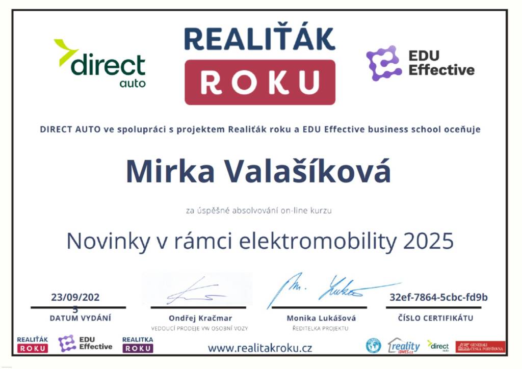 Měl jsem tu čest spolupracovat s paní Mirkou Valašíkovou při prodeji mého bytu a chtěl bych vyjádřit svou spokojenost s jejím profesionálním přístupem. Její komunikace byla vždy jasná, rychlá a vstřícná. Mohu ji vřele doporučit všem, kteří hledají spolehlivého a zkušeného makléře. Děkuji paní Valašíkové za její skvělou práci.