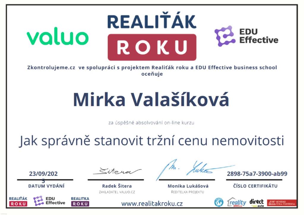Nejlepší věc, co jsem mohl udělat, že jsem si při prodeji domu vzal na pomoc paní Mirku Valašíkovou. Absolutní profesionál ve svém oboru a hlavně člověk se srdíčkem na pravém místě. Jestli ještě někdy v budoucnu budu potřebovat pomoc realitního makléře, moje volba je jasná. Moc děkuji paní Mirko, jste skvělá.