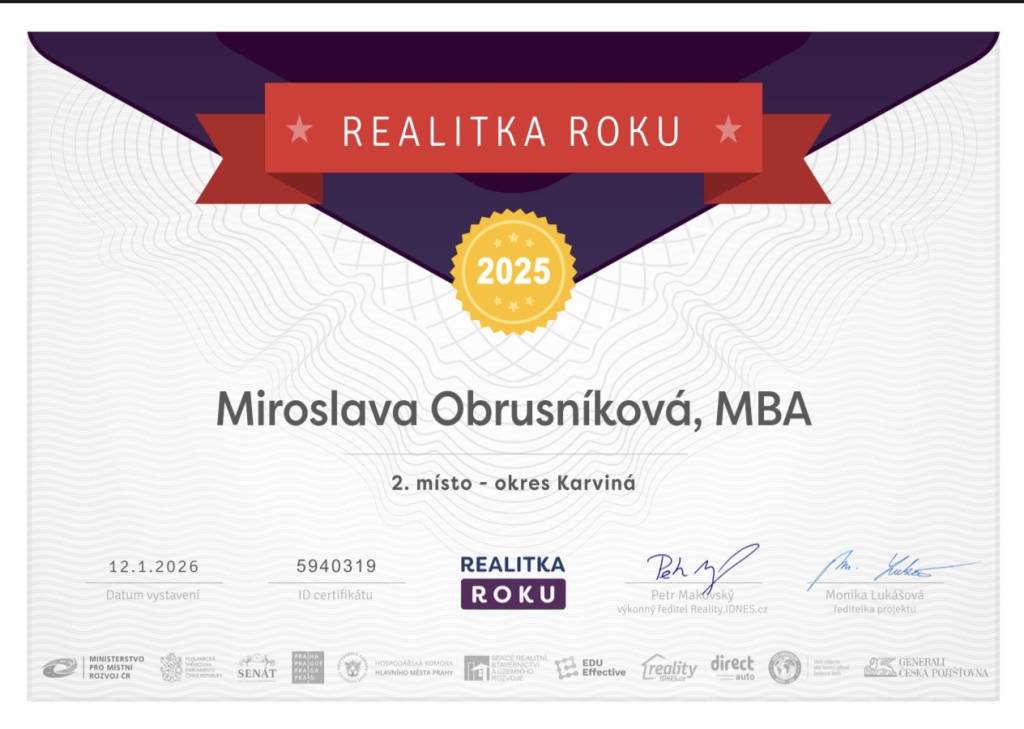 "S paní makléřkou jsem při řešení svého bydlení v Ostravě byla maximálně spokojená – vše proběhlo rychle, profesionálně a bez starostí. Oceňuji její ochotu, férové jednání a perfektní přehled o trhu. Navíc mi předala i skvělý kontakt v oblasti investic, za což moc děkuji. Vřele doporučuji!“