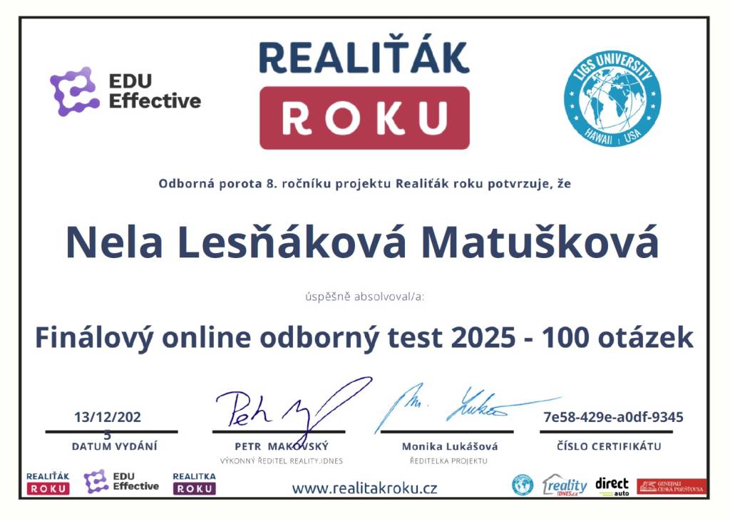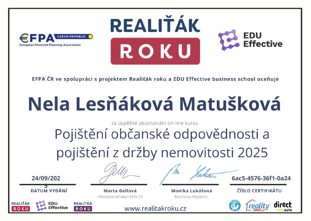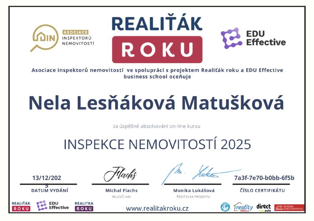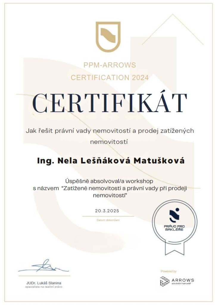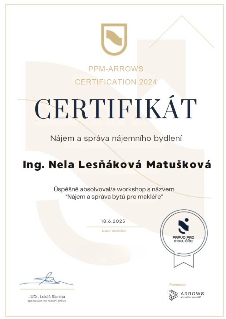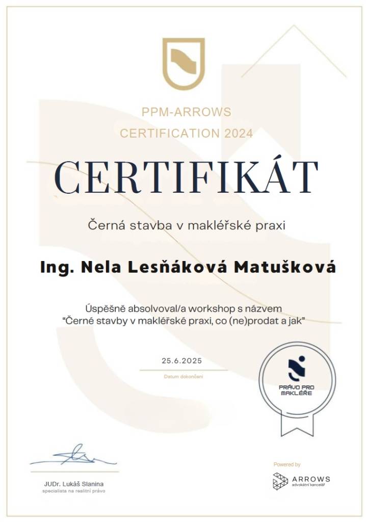 Paní Ing. Nela Matušková, se kterou dlouhodobě spolupracuji, se výrazně odlišuje od ostatních makléřů svou pečlivostí, spolehlivostí, proklientským přístupem a komplexností poskytovaných služeb v oblasti realit na nadstandardní úrovni. Jsem velmi spokojen a paní makléřku Nelu mohu vřele doporučit.