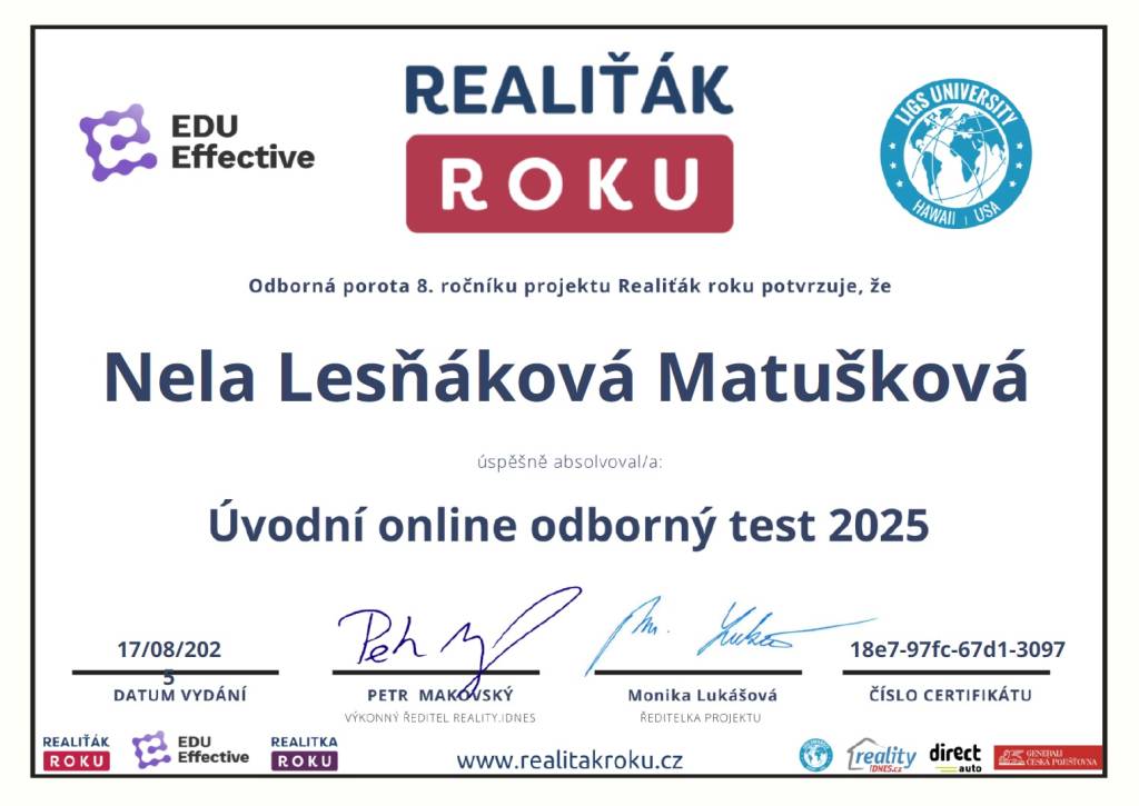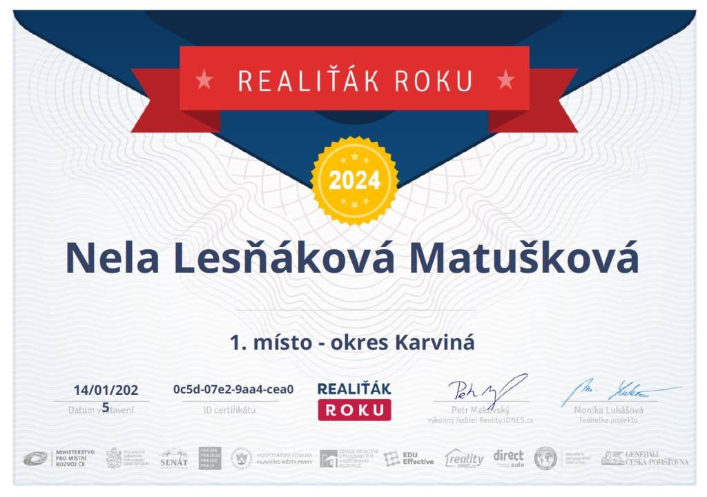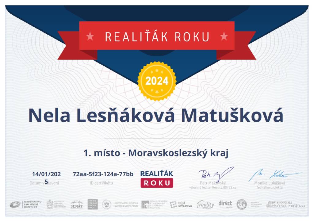 Nedávno jsem měl to potěšení spolupracovat s Nelou Lesňákovou Matuškovou jako s realitní makléřkou v Karviné a nedokážu vyjádřit, jak jsem ohromen její profesionalitou, znalostmi a oddaností klientům. Díky výjimečným službám Nely byla celá moje realitní transakce bezproblémovou a příjemnou zkušeností.